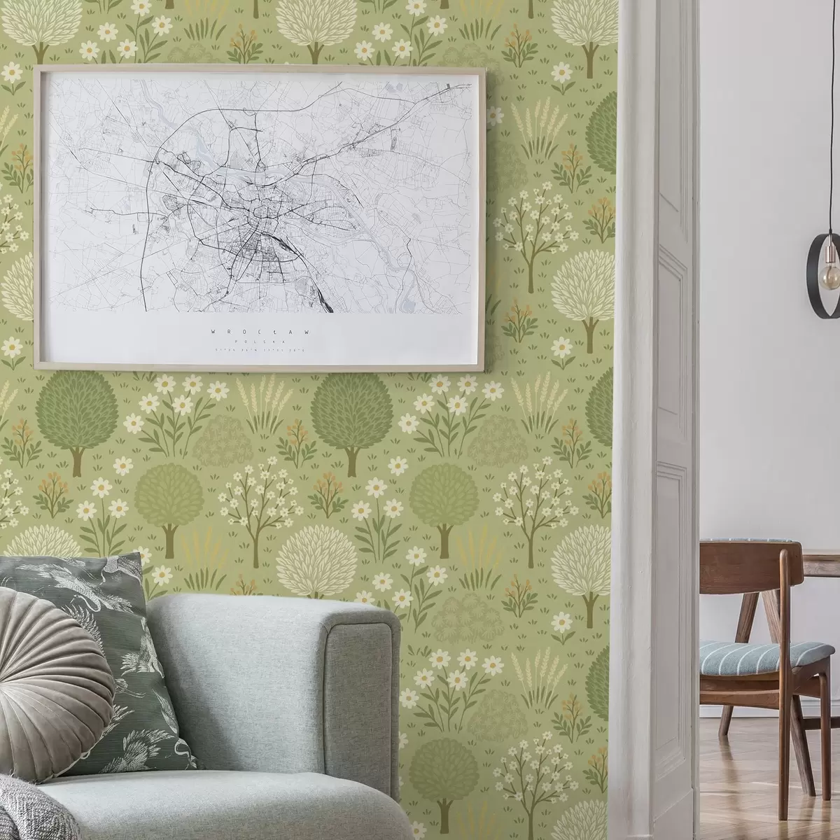 Wallpapers Kids’ green garden: trees, flowers and wheat No. a00586