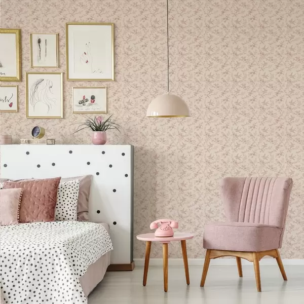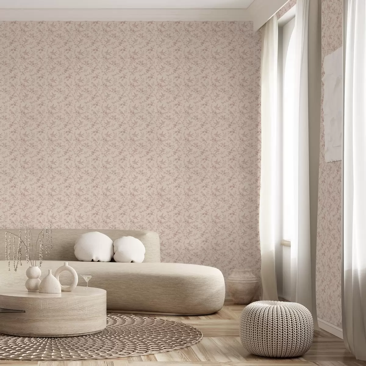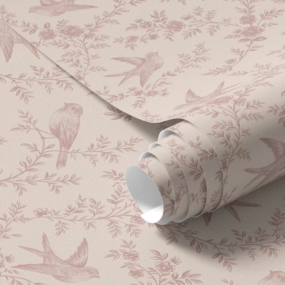Wallpapers Birds and roses, vintage pattern on powder pink No. a00587