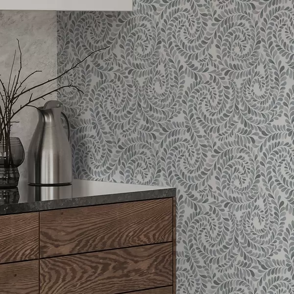 Wallpapers Leafy spirals in cool gray-blue tones No. a00602v1