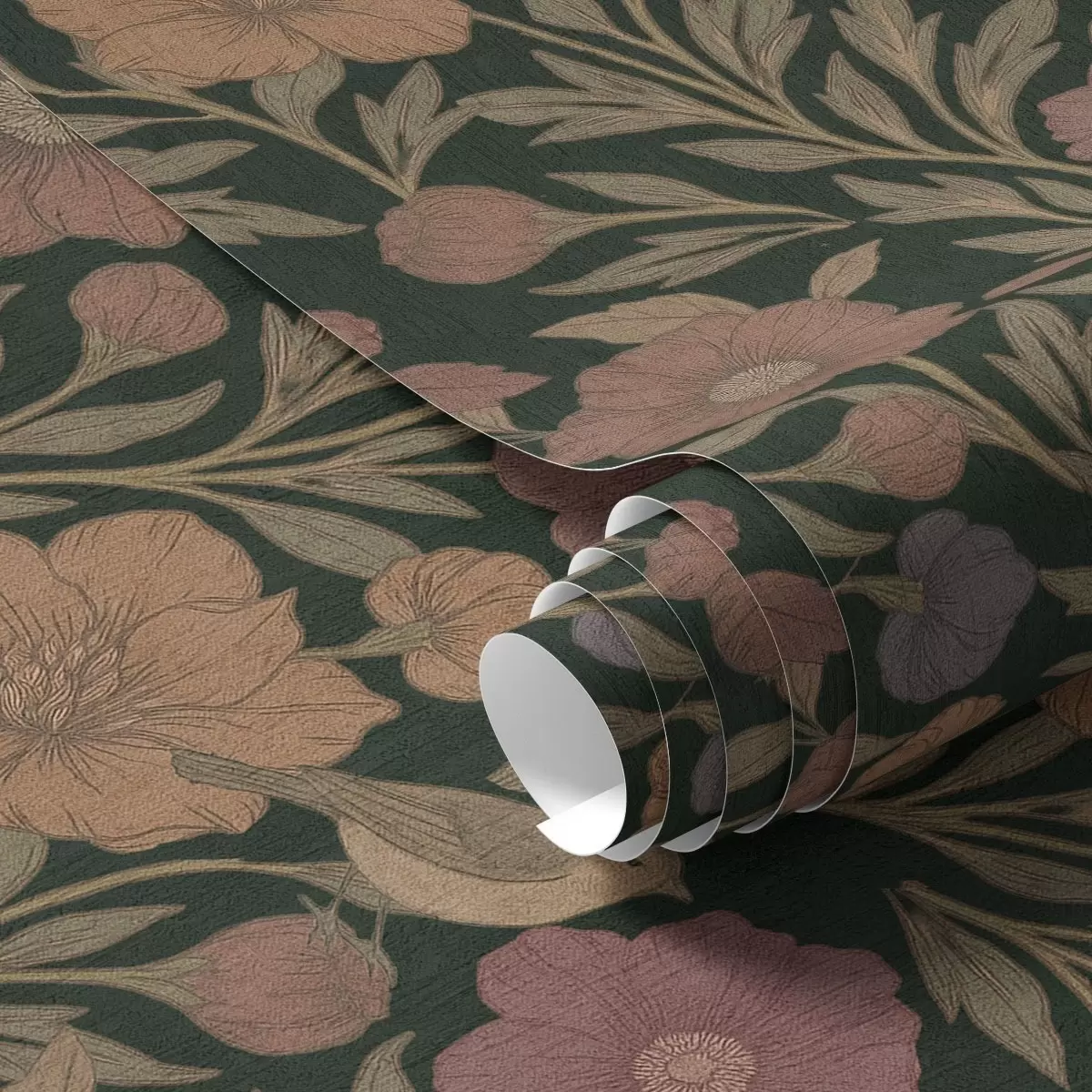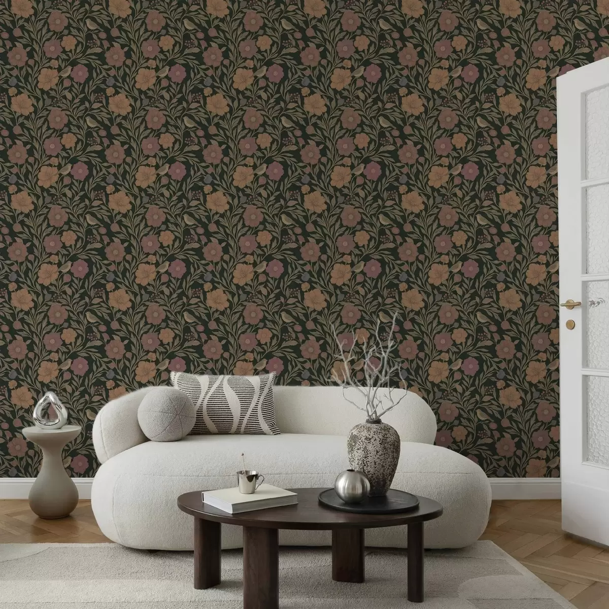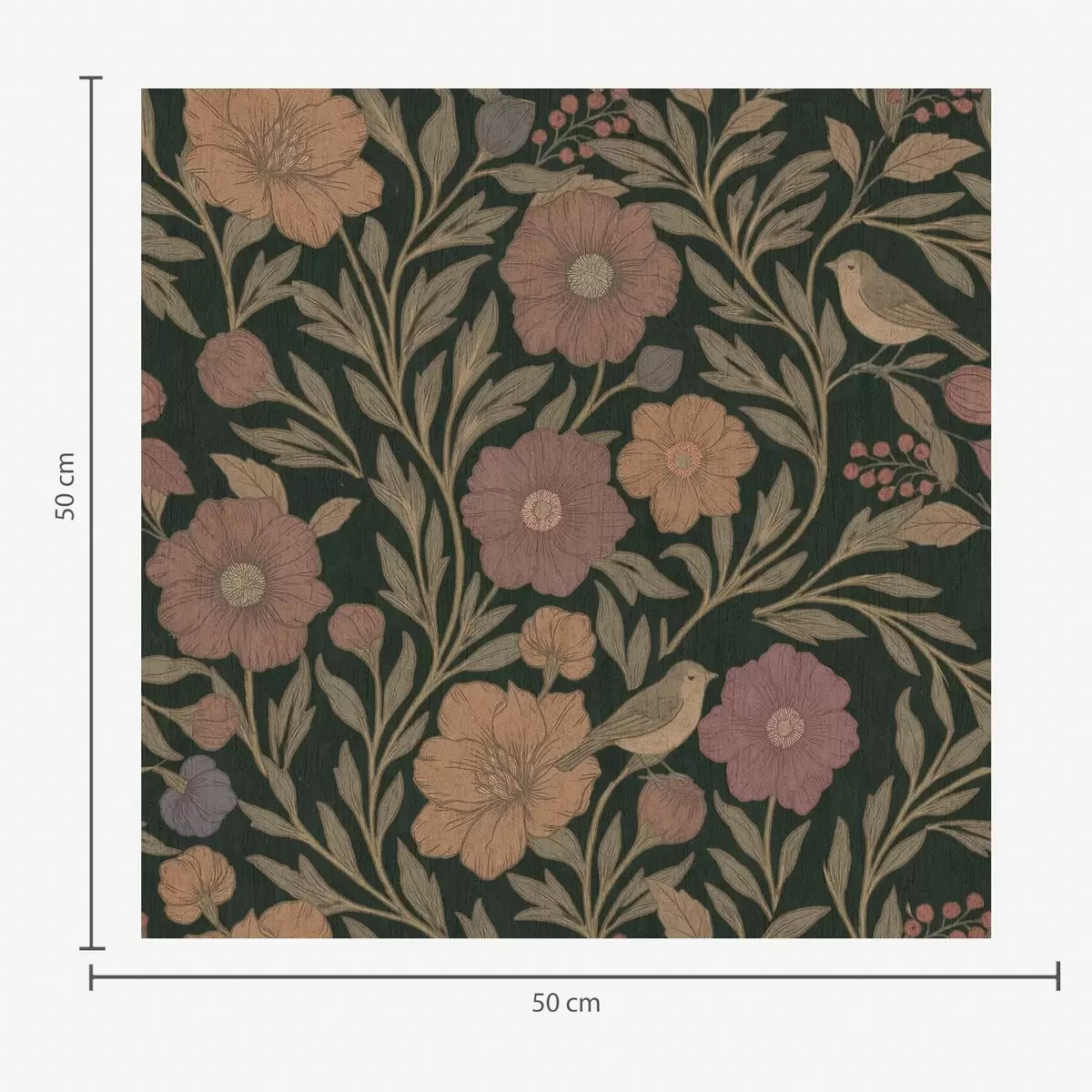 Wallpapers Autumn flowers and birds on deep emerald background No. a00605v1