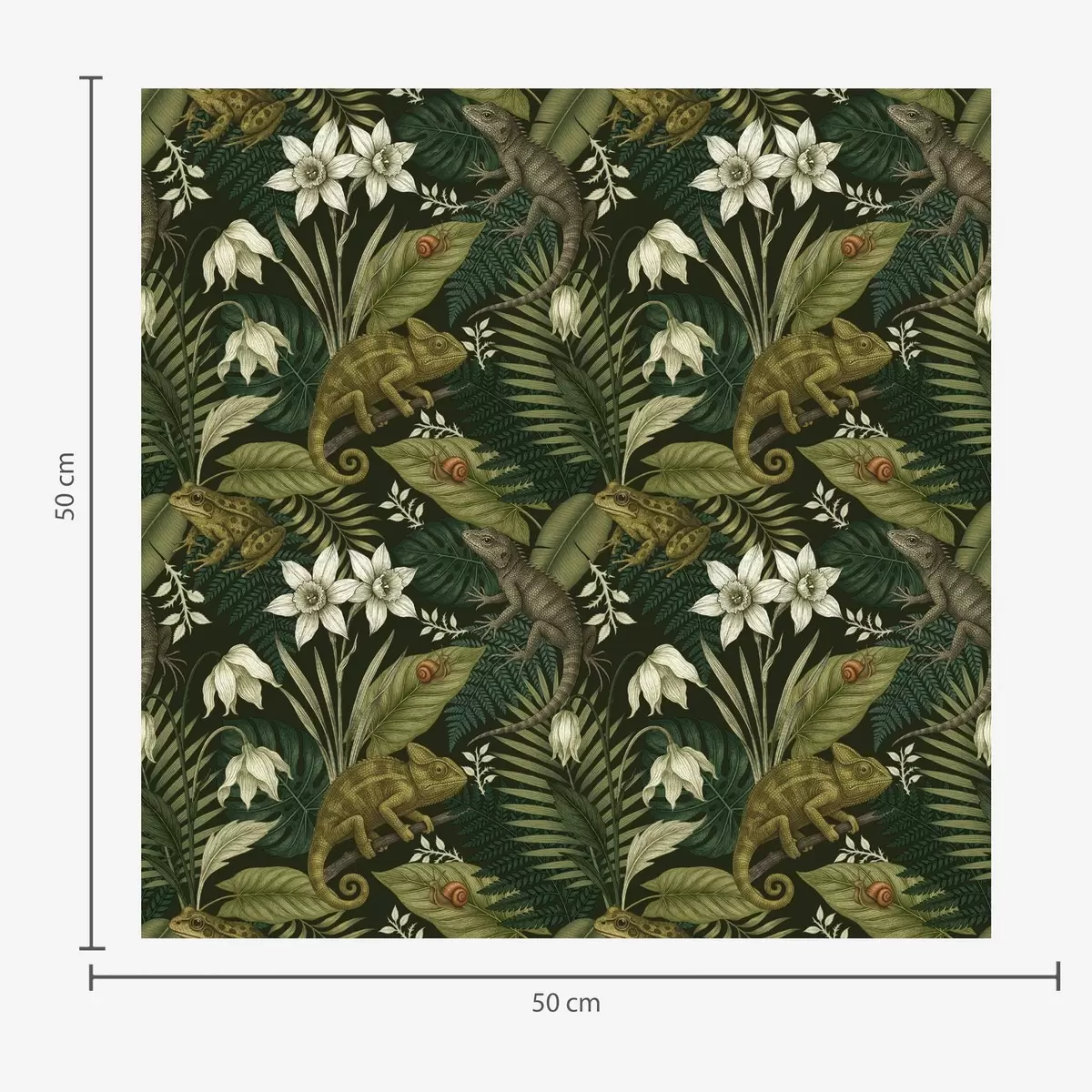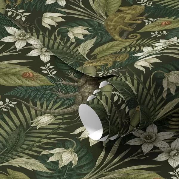Wallpapers Chameleons and tropical leaves, white flowers, dark ground No. a00608v1
