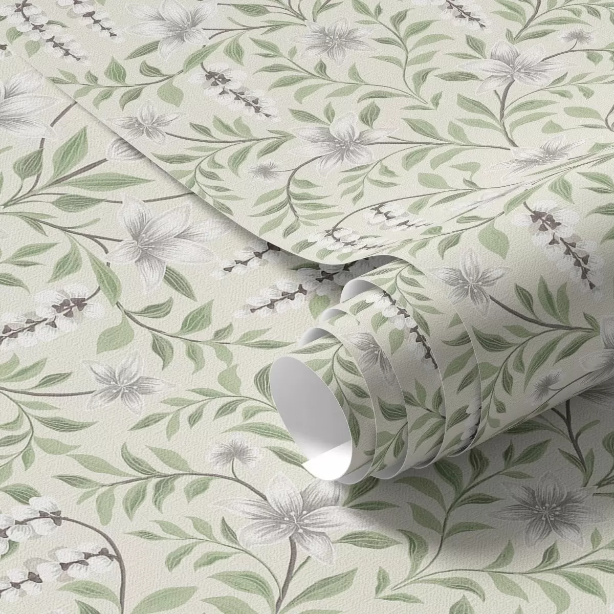 Wallpapers Light vine ornament with white flowers, symmetry No. a00609
