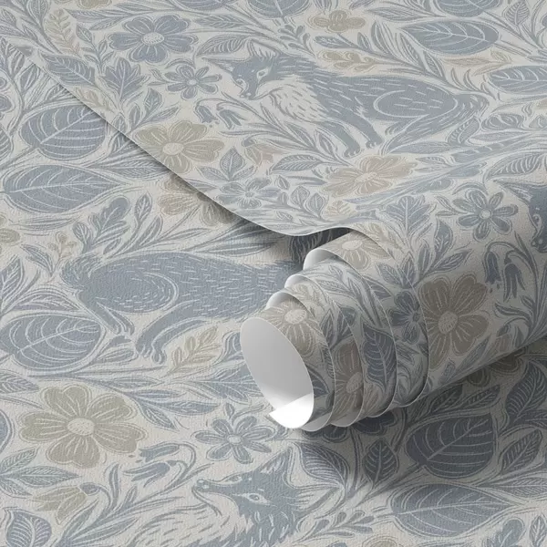 Wallpapers Forest animals and flowers: fox and hare in blue tones No. a00613