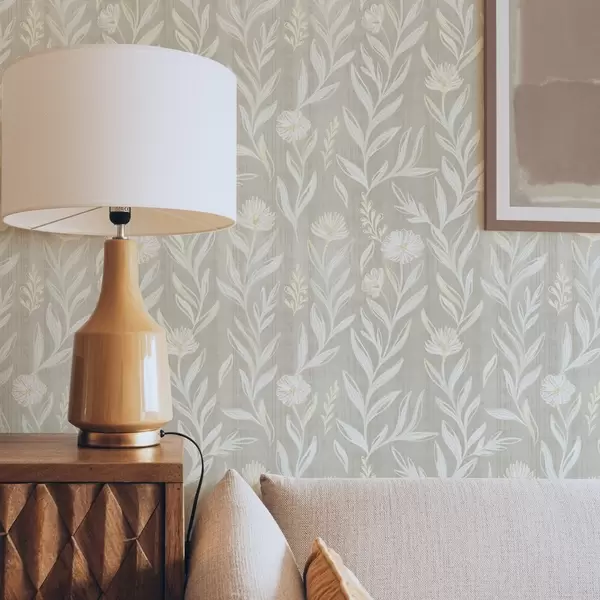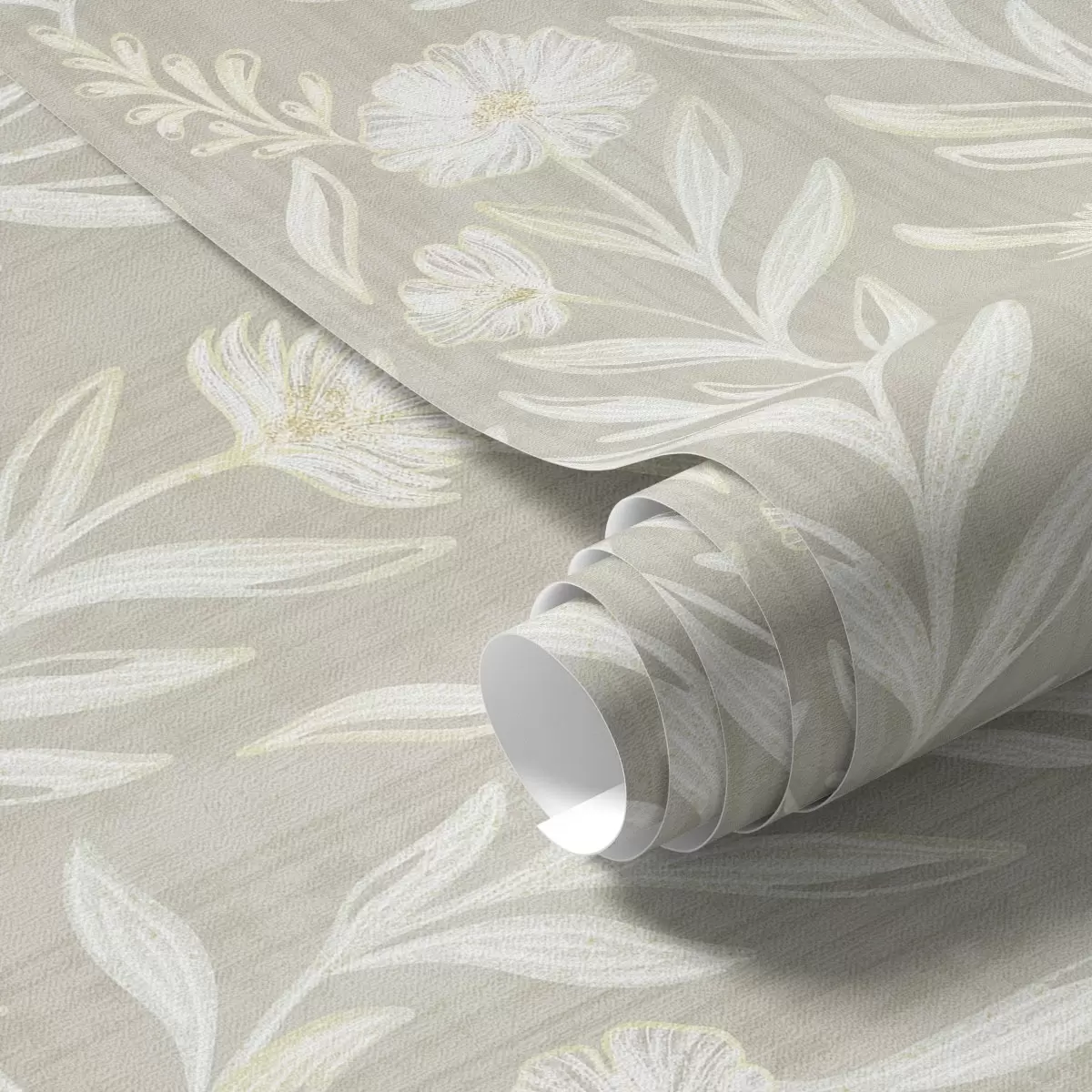 Wallpapers Light grasses and flowers on beige, sketchy lines No. a00618