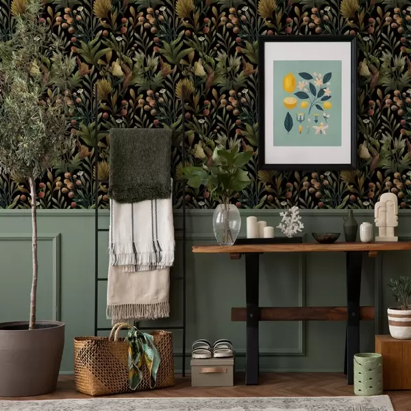 Wallpapers Botanical garden on black background, warm autumn palette No. a00619