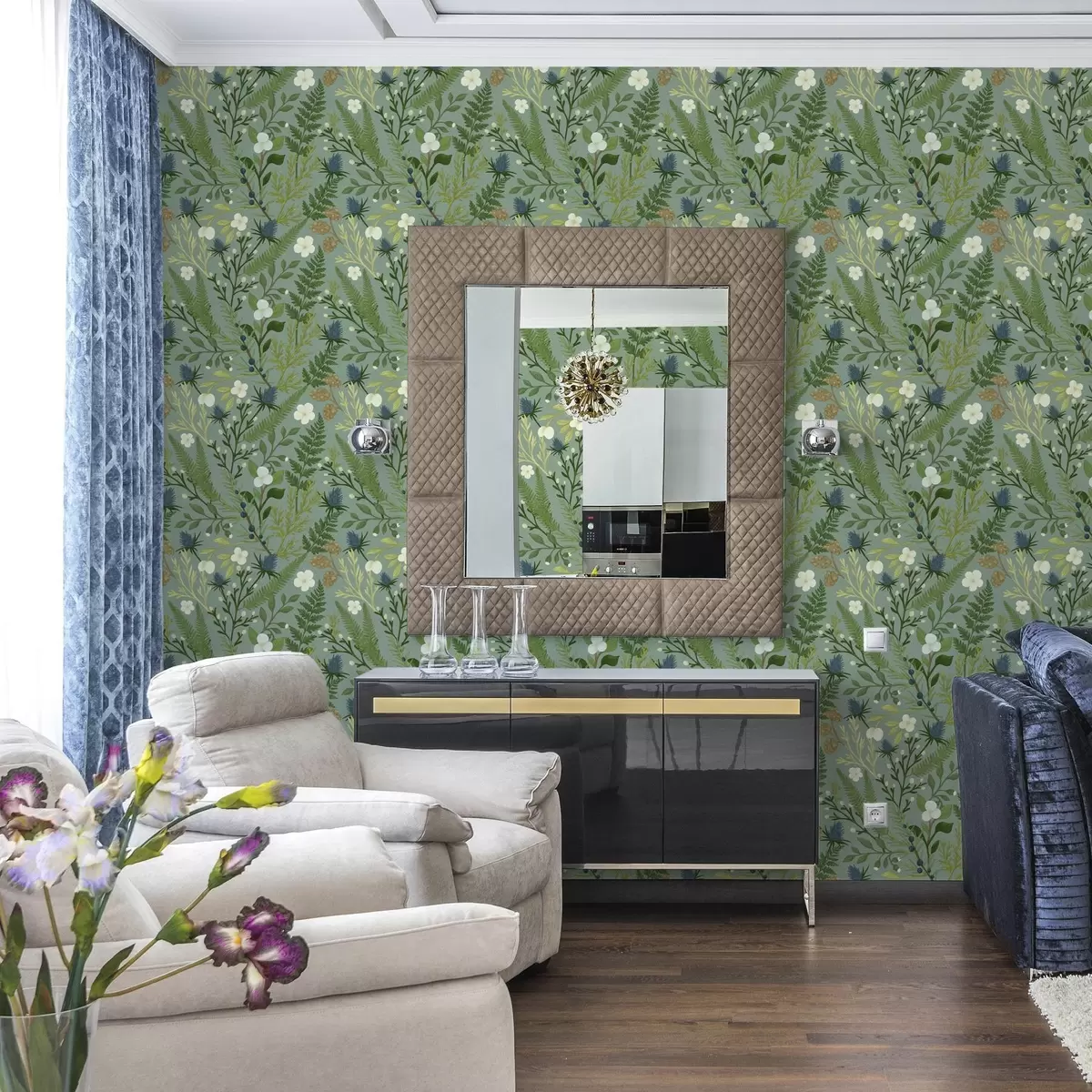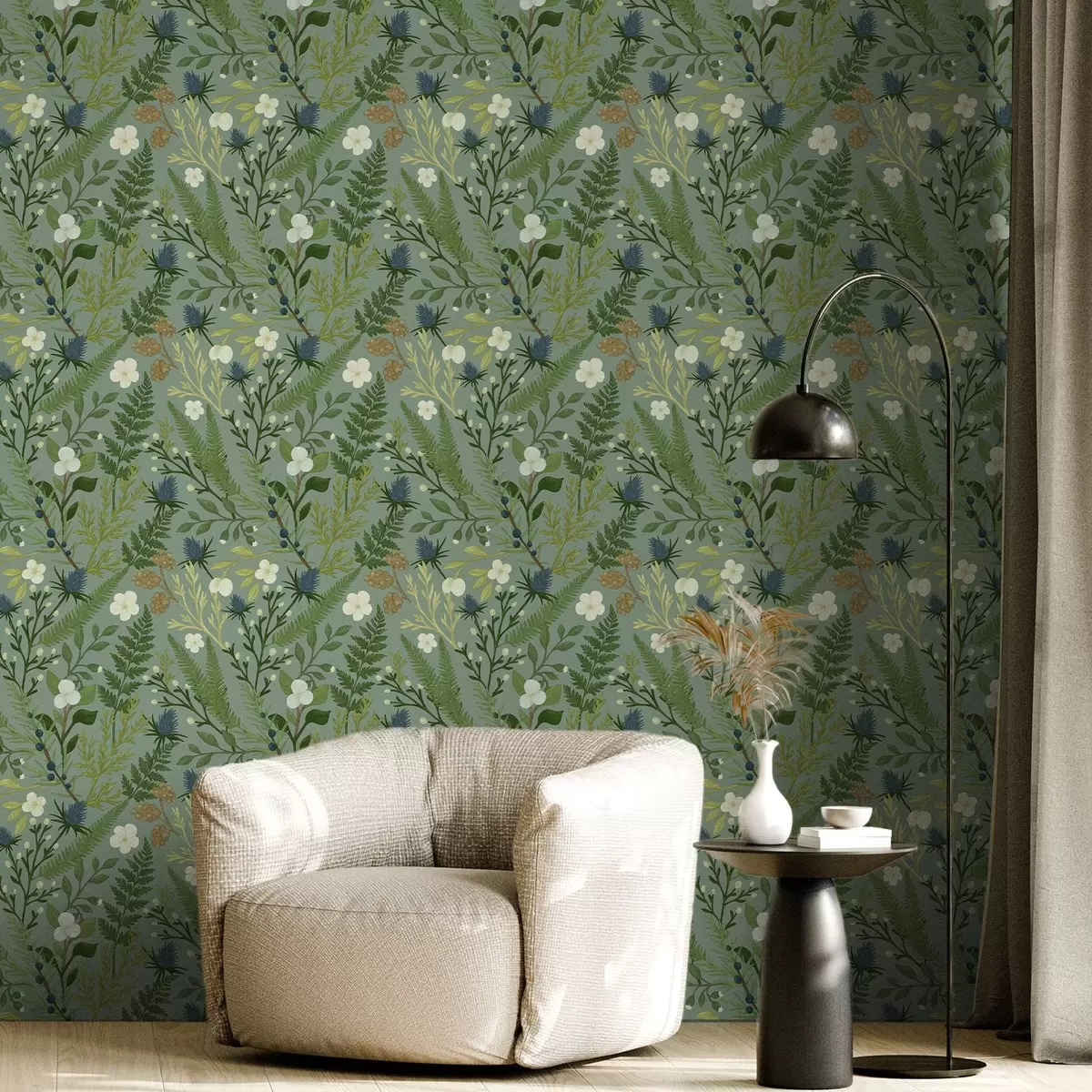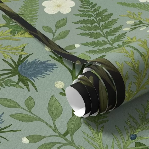 Wallpapers Woodland herbs, chicory and berries on a mint background No. a00621v1