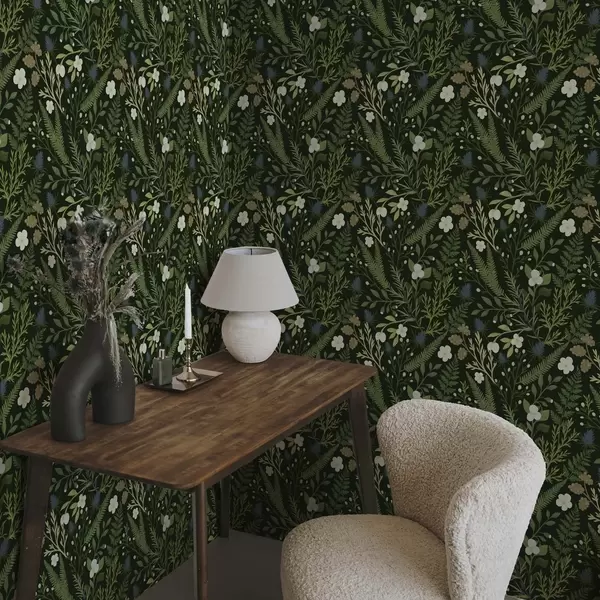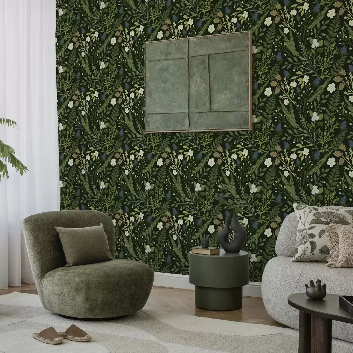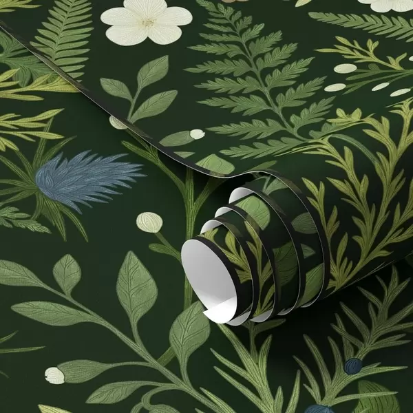 Wallpapers Woodland herbs and berries on a dark green background No. a00621v2