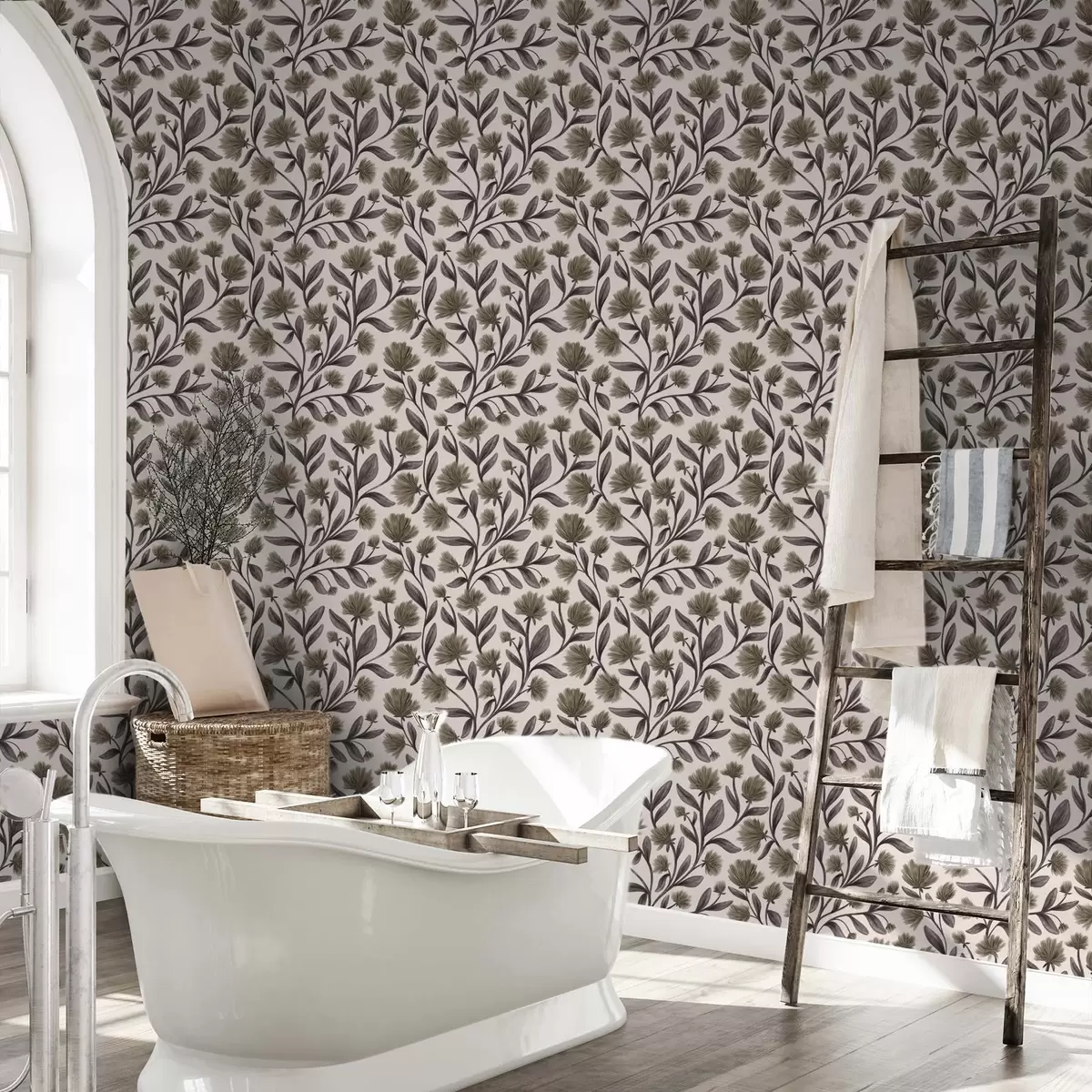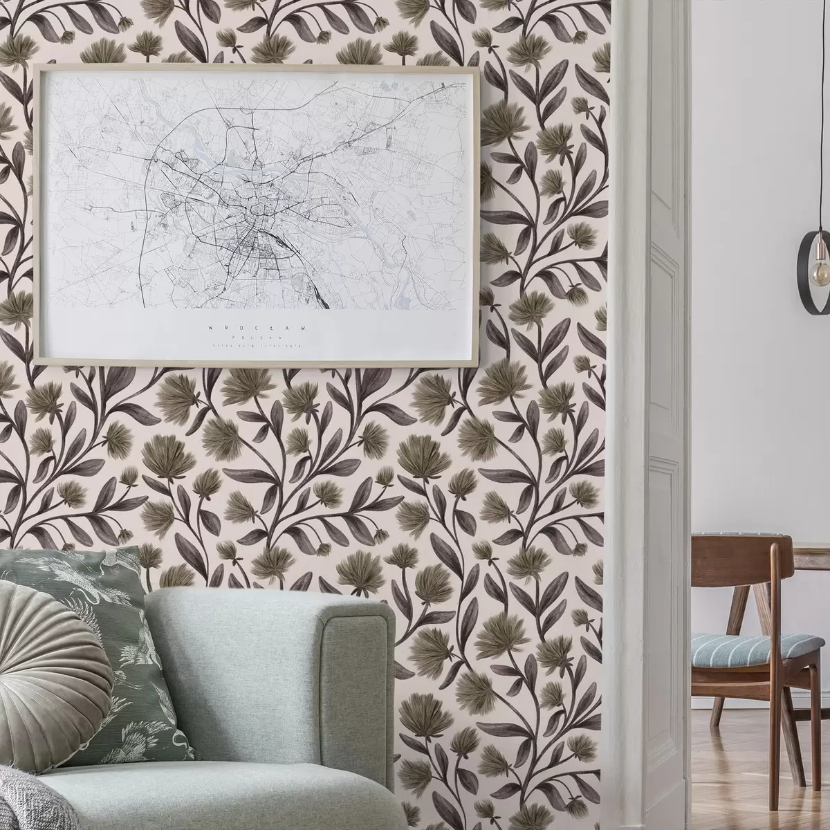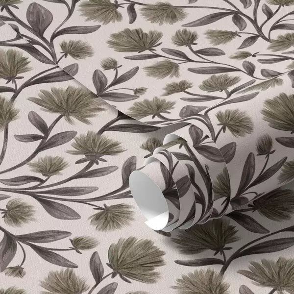 Wallpapers Wildflowers in gray-olive tones on a cream background No. a00623v1