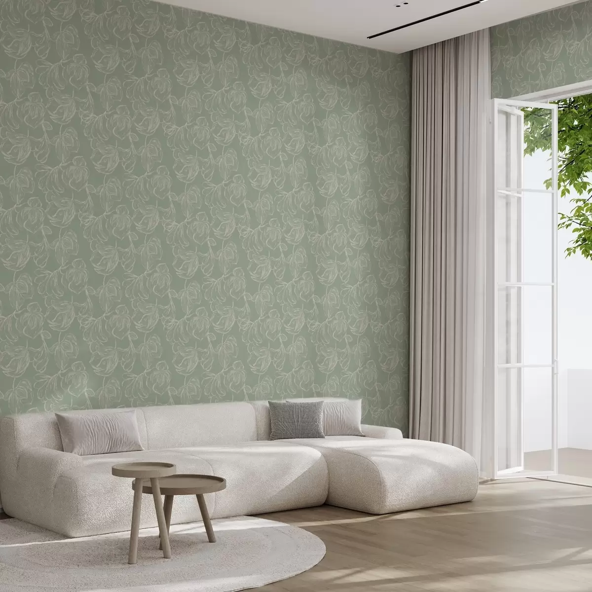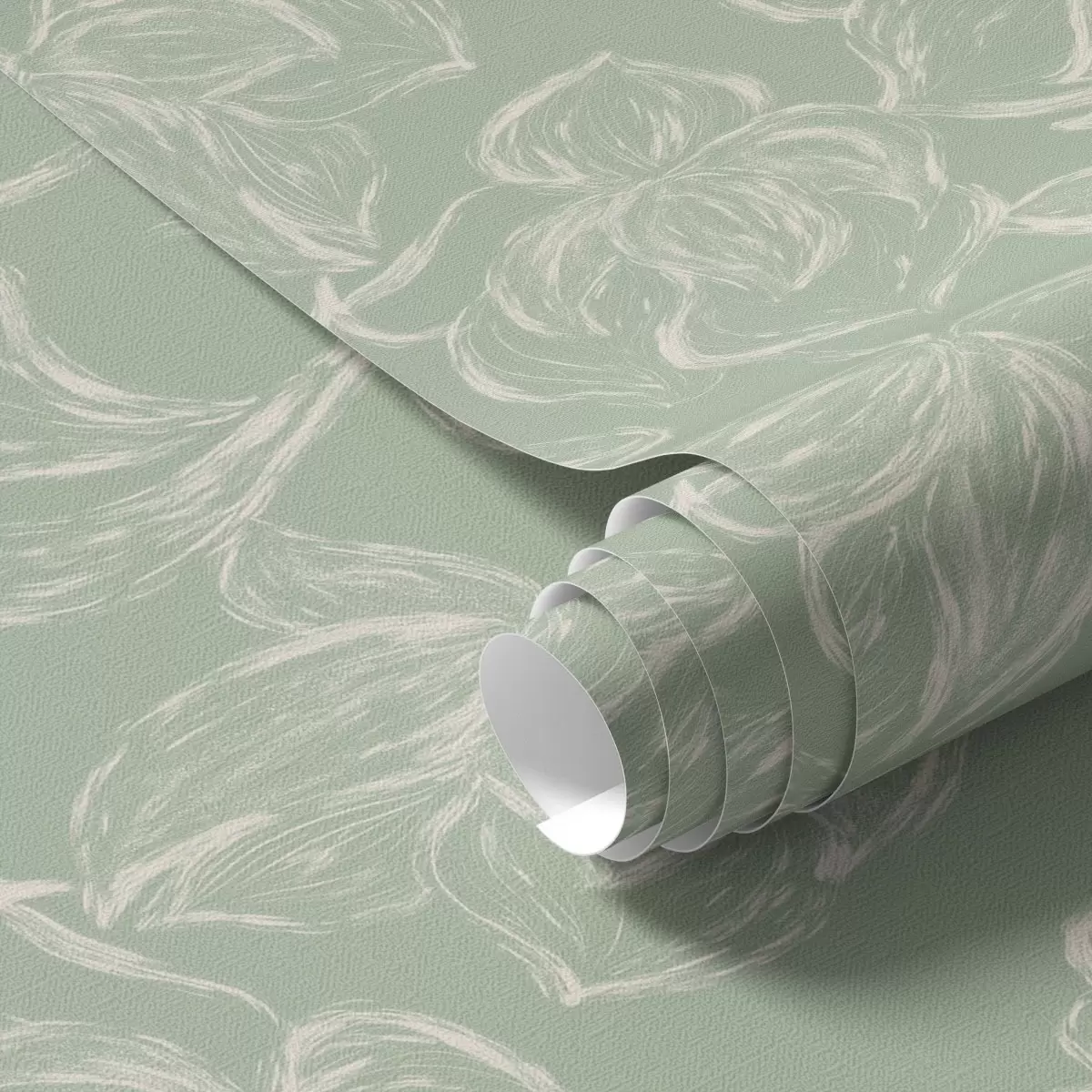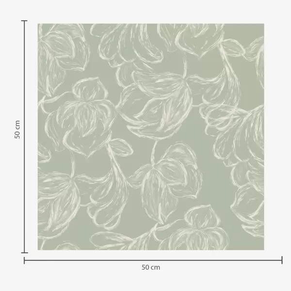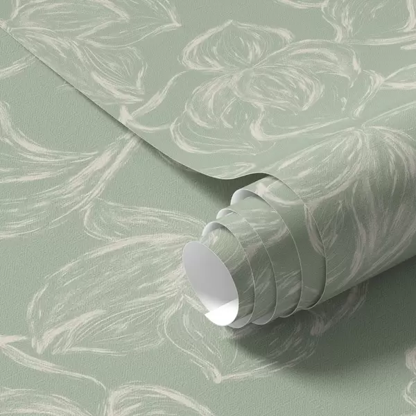 Wallpapers Linear large flowers, chalk strokes on a sage background No. a00625v1