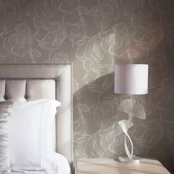 Wallpapers Cream outline flowers on a warm taupe background No. a00625v2