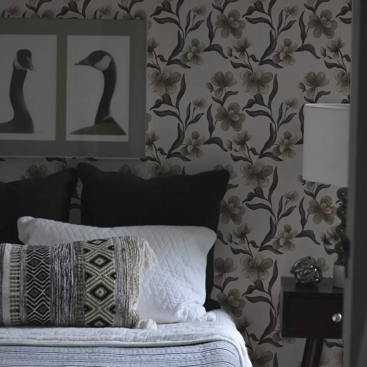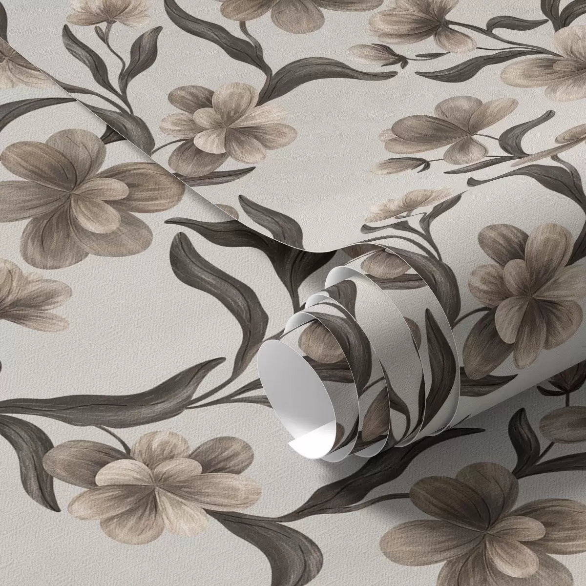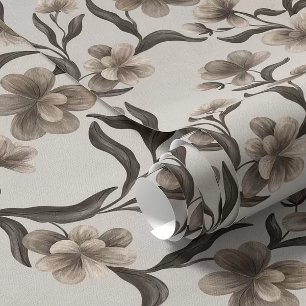 Wallpapers Beige flowers and dark branches on a light gray background No. a00626v1