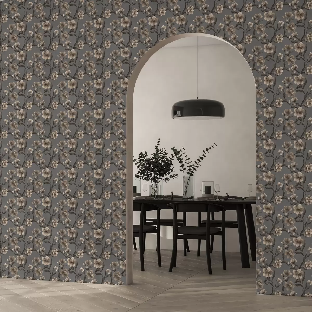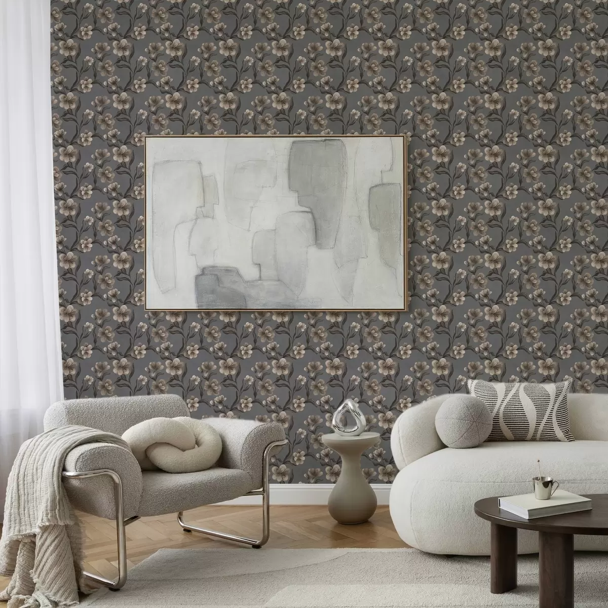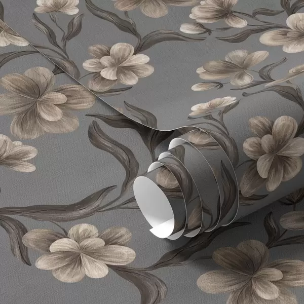 Wallpapers Beige flowers on a graphite-gray background No. a00626v4