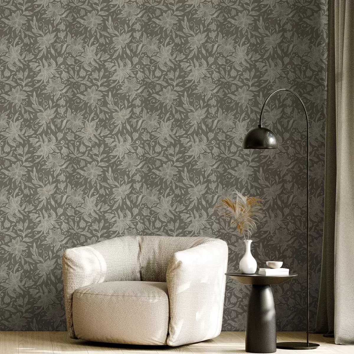 Wallpapers Light linear flowers, decorative scrolls No. a00630v1