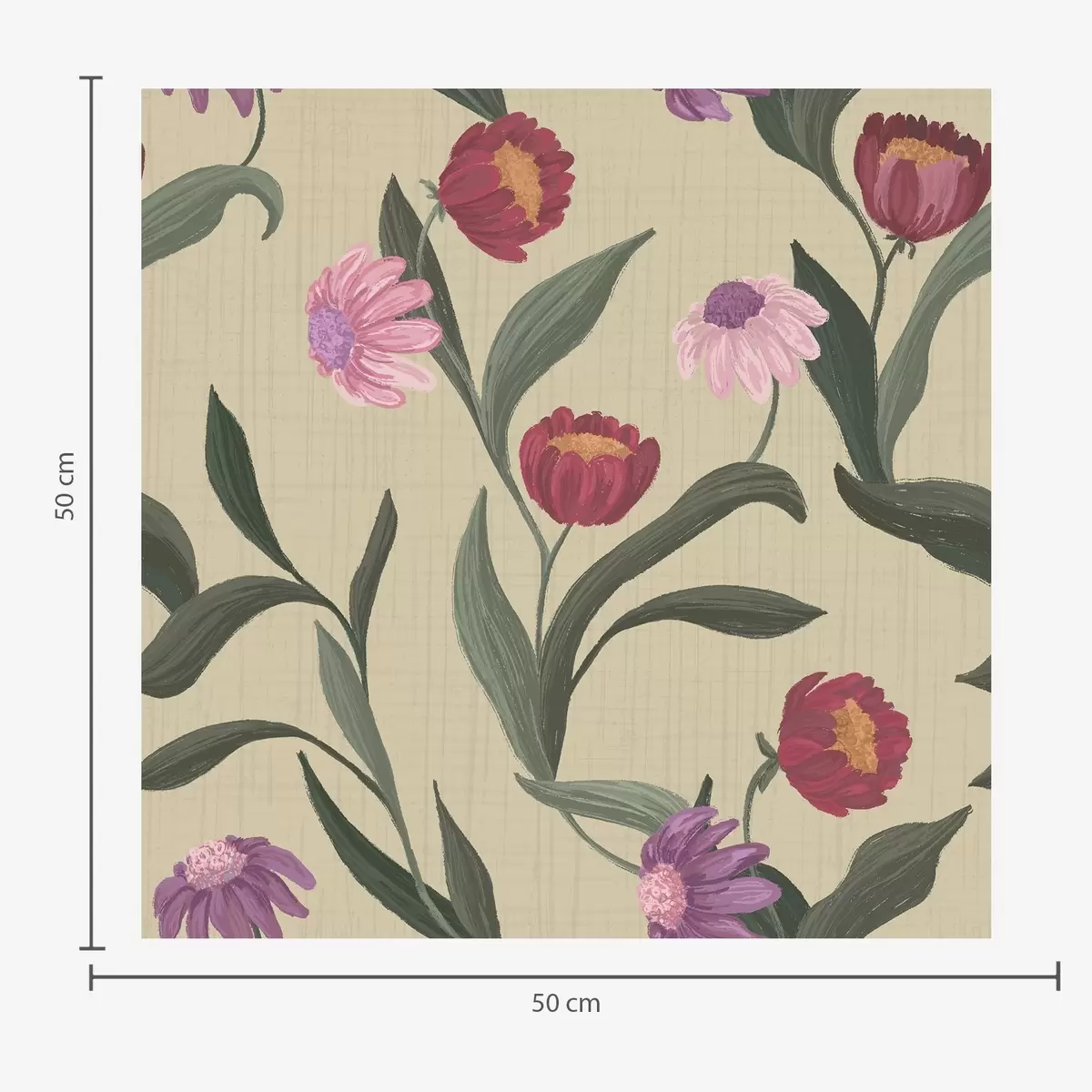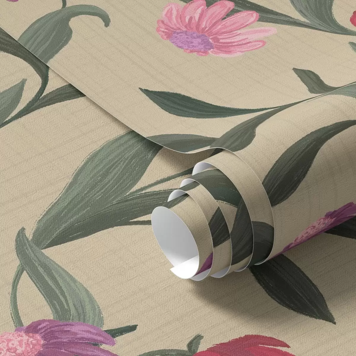 Wallpapers Pink-red flowers on a beige background, hand-drawn texture No. a00631