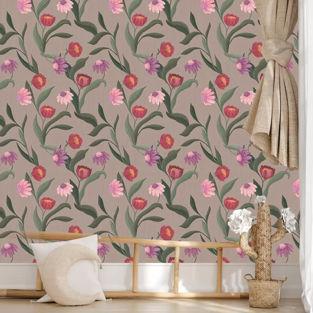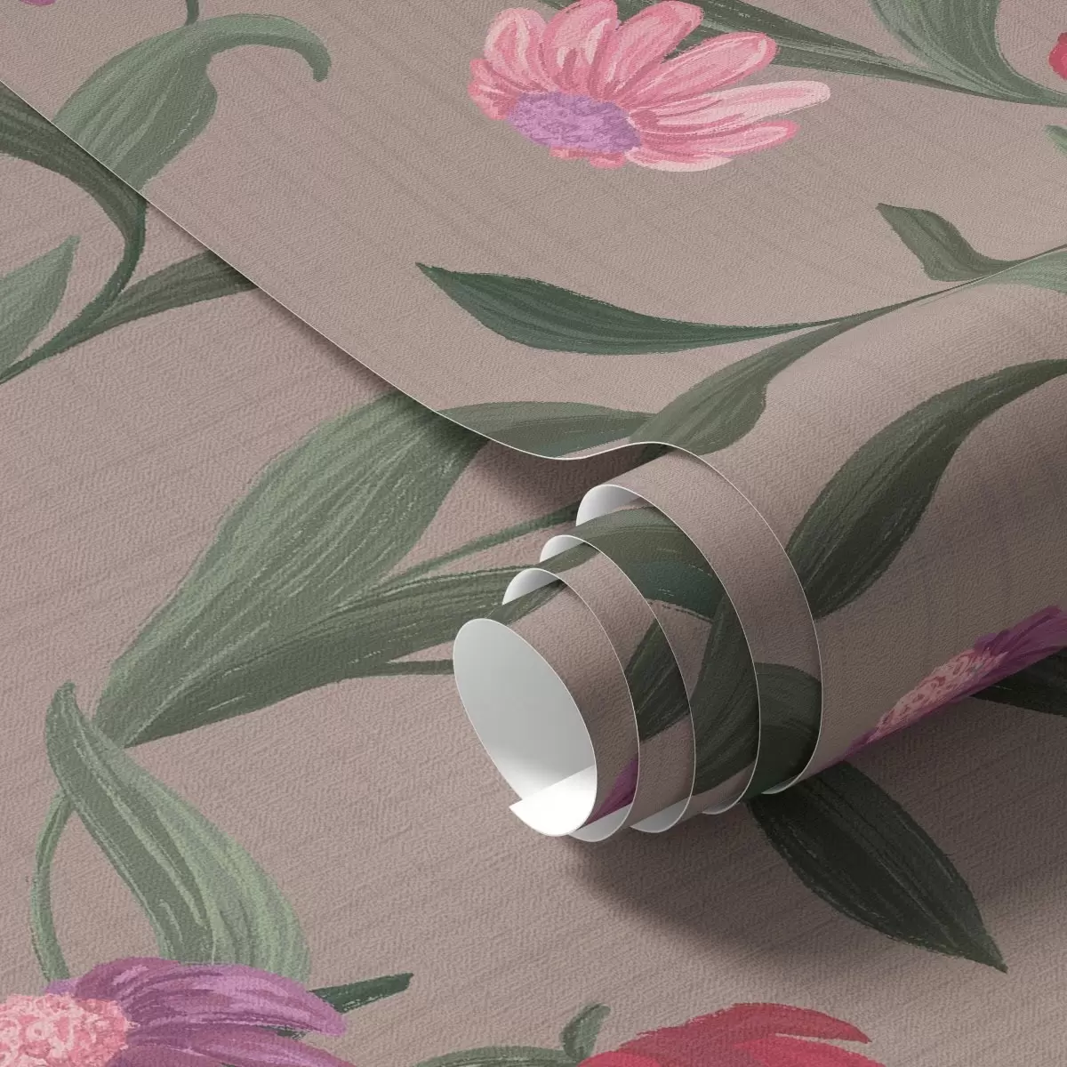 Wallpapers Pink-red flowers on a taupe background, long stems No. a00631v2
