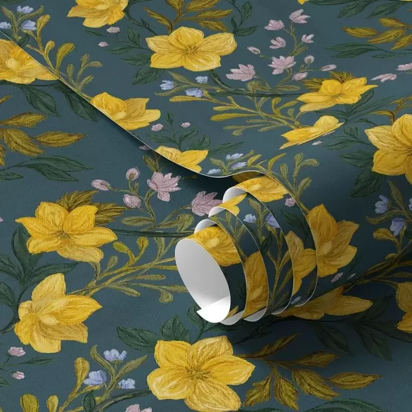 Wallpapers Yellow flowers in vertical garlands on a dark blue background No. a00632v2
