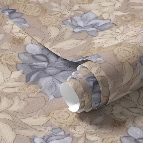 Wallpapers Cream and blue flowers on a warm beige background No. a00634v1