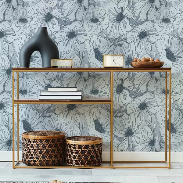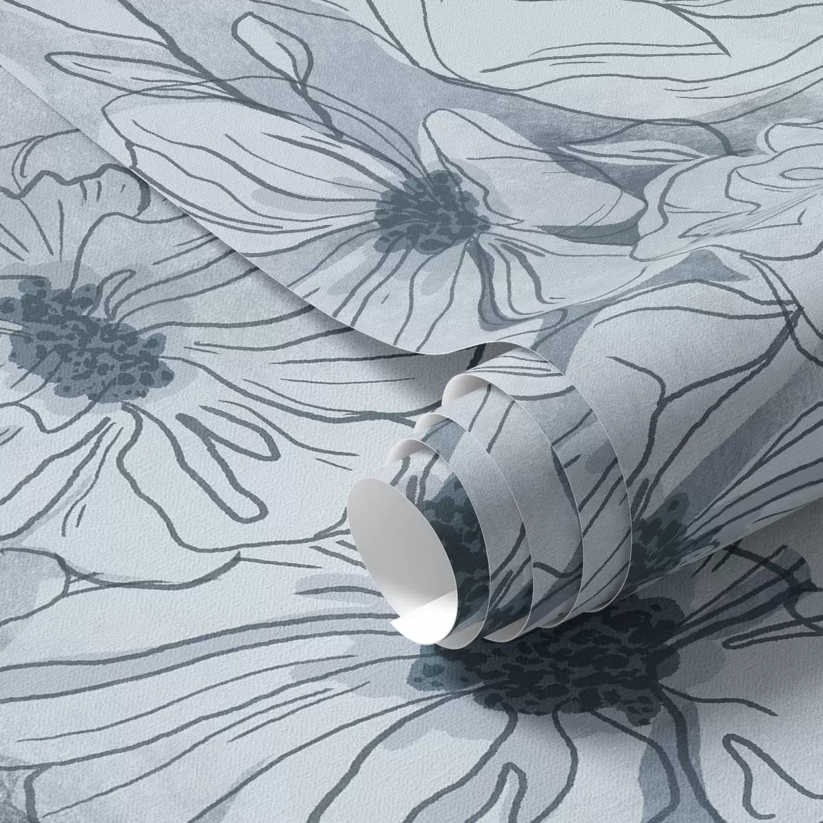 Wallpapers Linear flowers in a cool gray-blue palette No. a00636v2