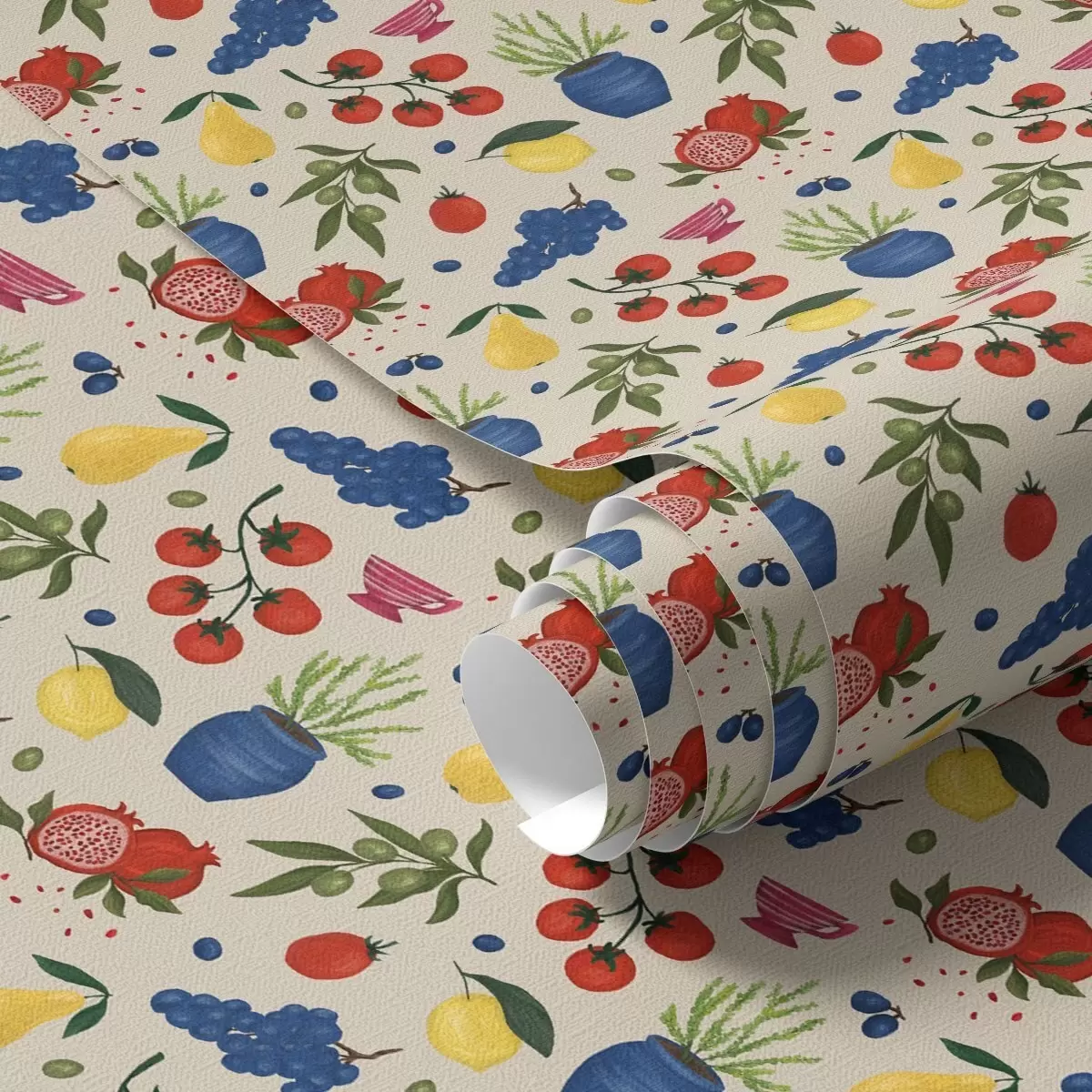 Wallpapers Vibrant pattern with fruits, branches, and vases No. a00637