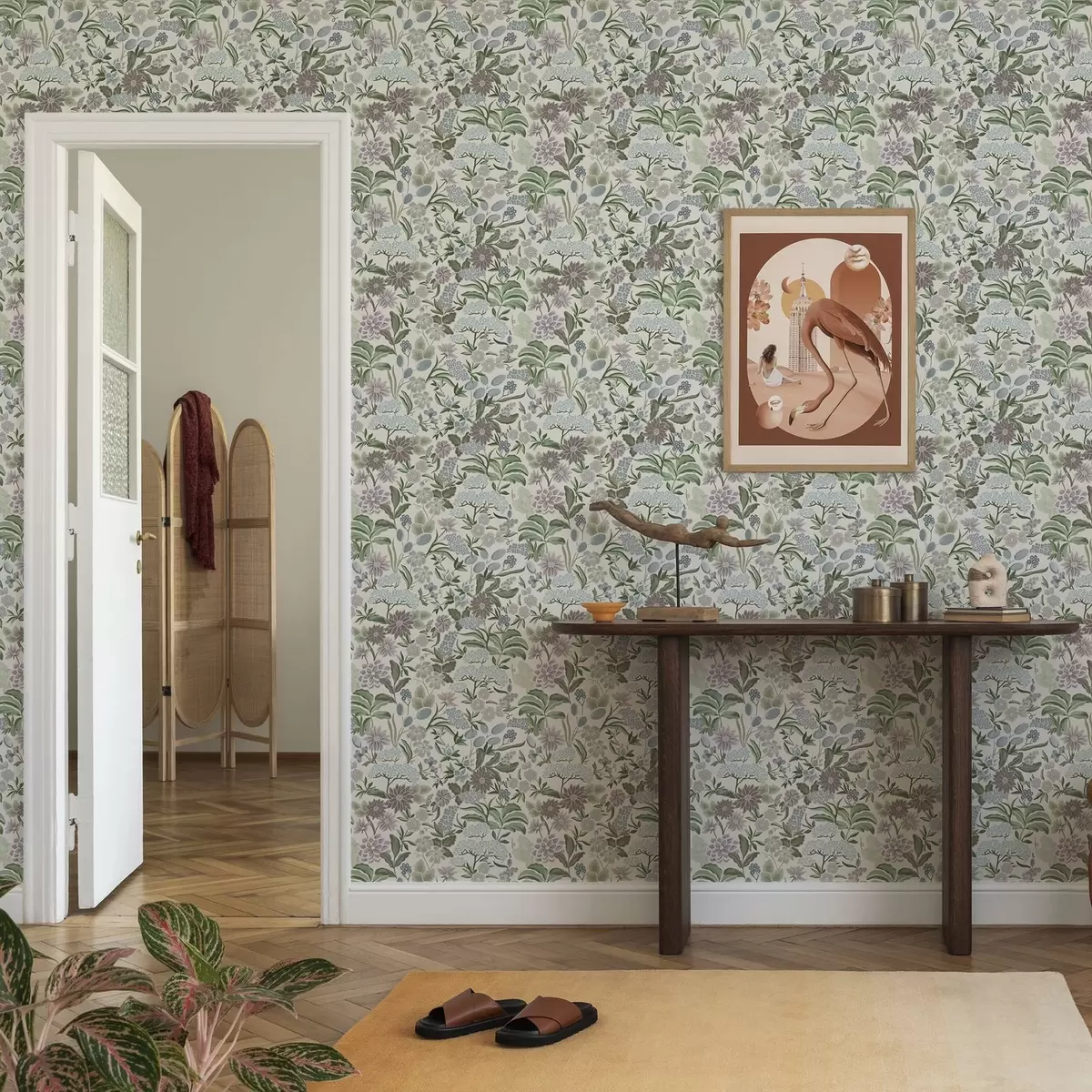Wallpapers Pastel flowers and foliage in a mint-blue palette No. a00642