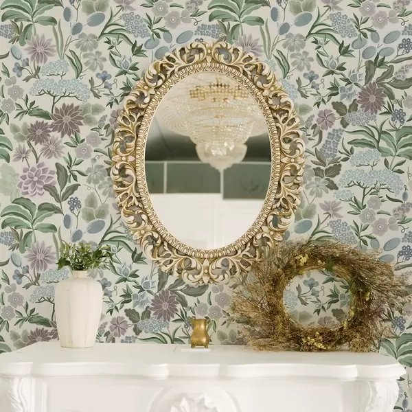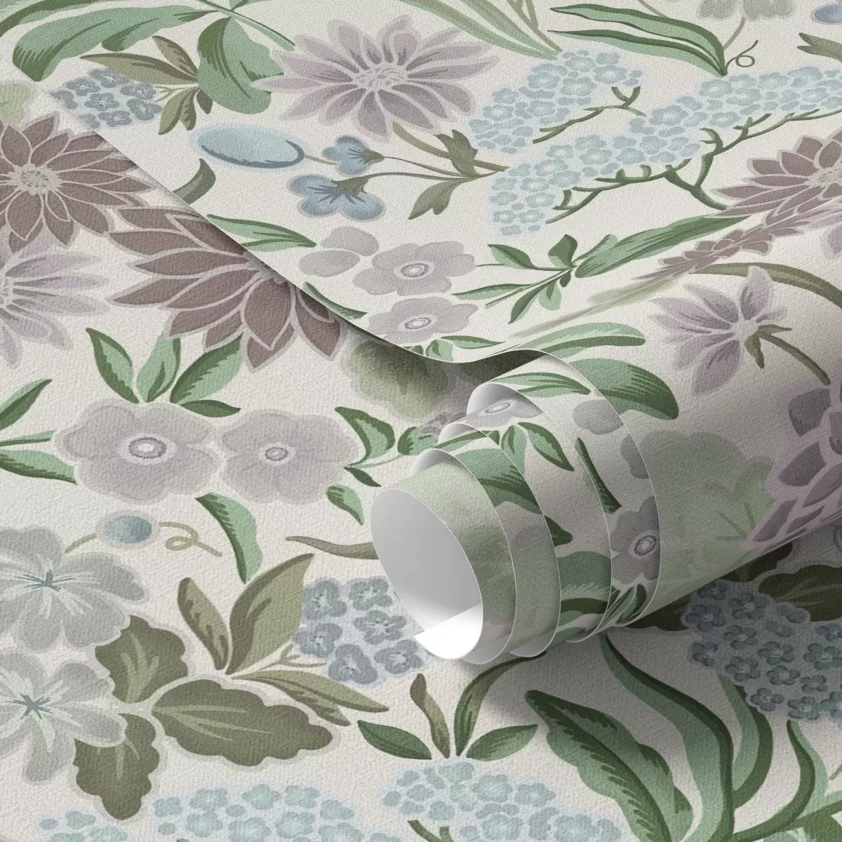 Wallpaper Pastel flowers and foliage in a mint-blue palette a00642
