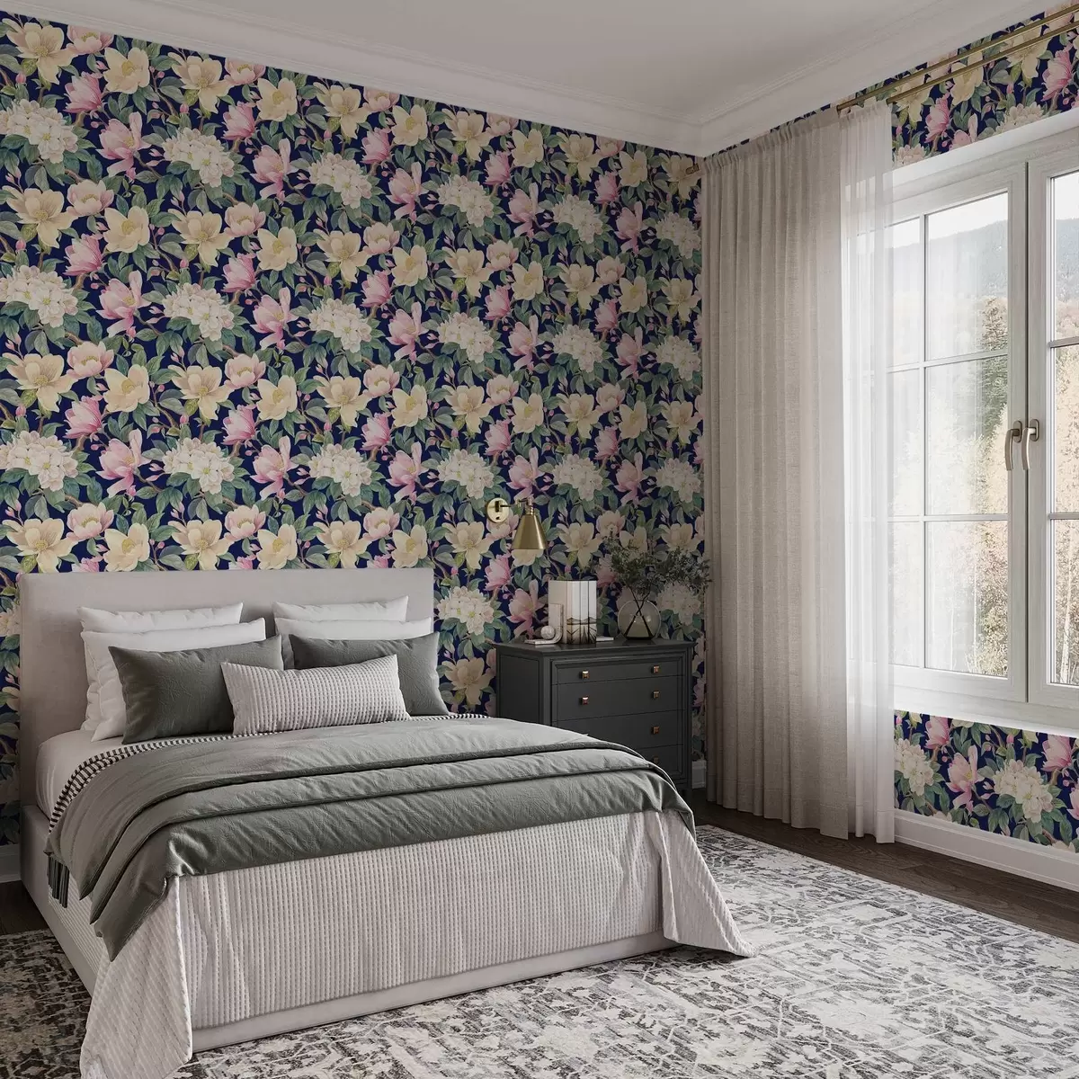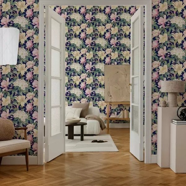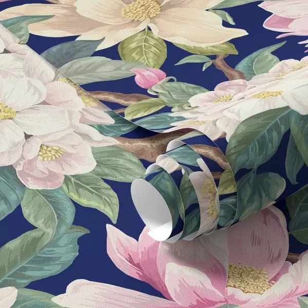 Wallpapers Magnolias and buds on a deep navy background No. a00644v1