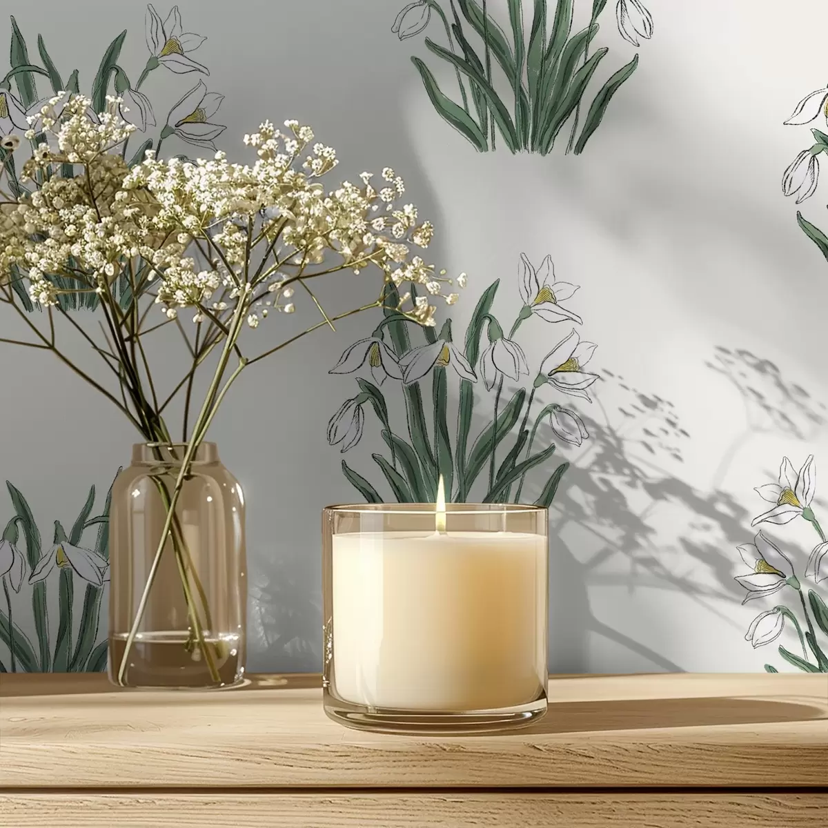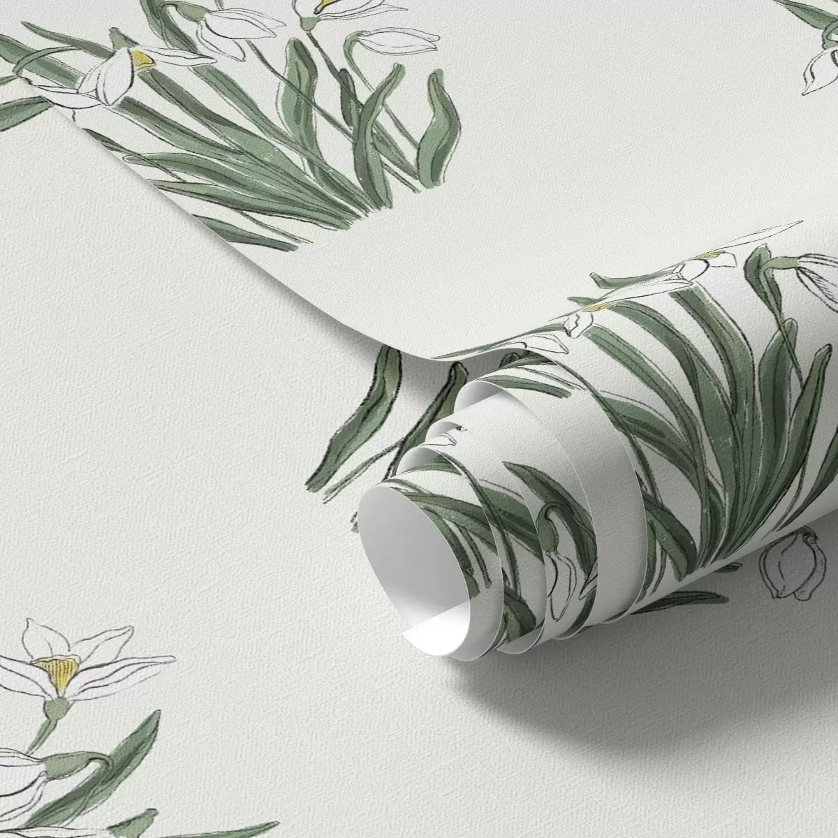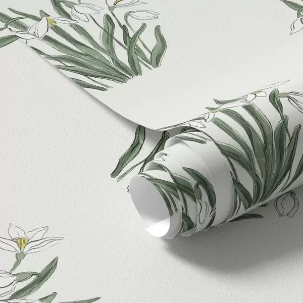 Wallpapers Snowdrops with green leaves on a light gray background No. a00651v1