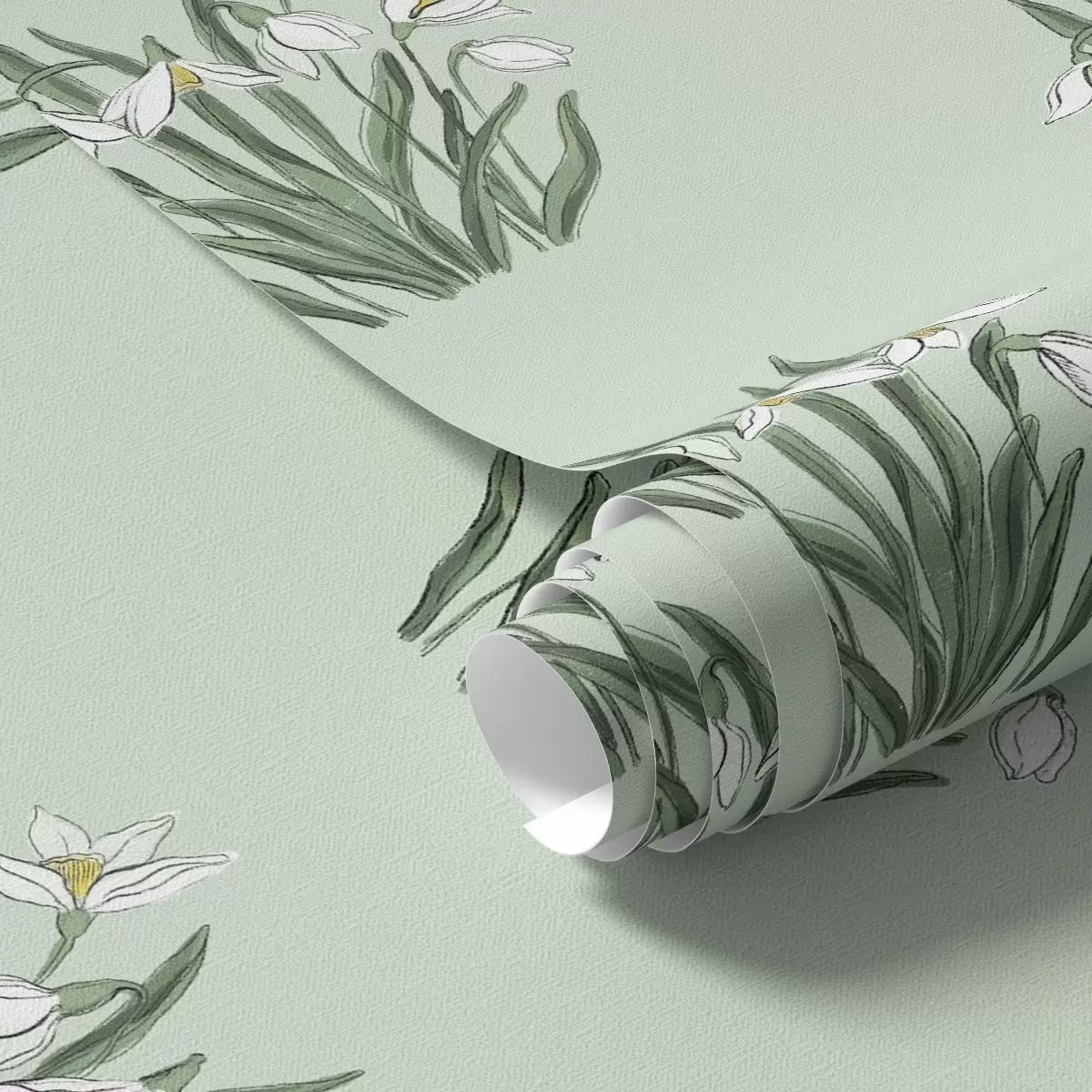 Wallpapers Snowdrops with green leaves on a warm yellow background No. a00651v3
