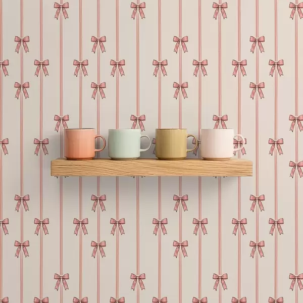 Wallpapers Vertical ribbons with bows, ivory background No. a00653