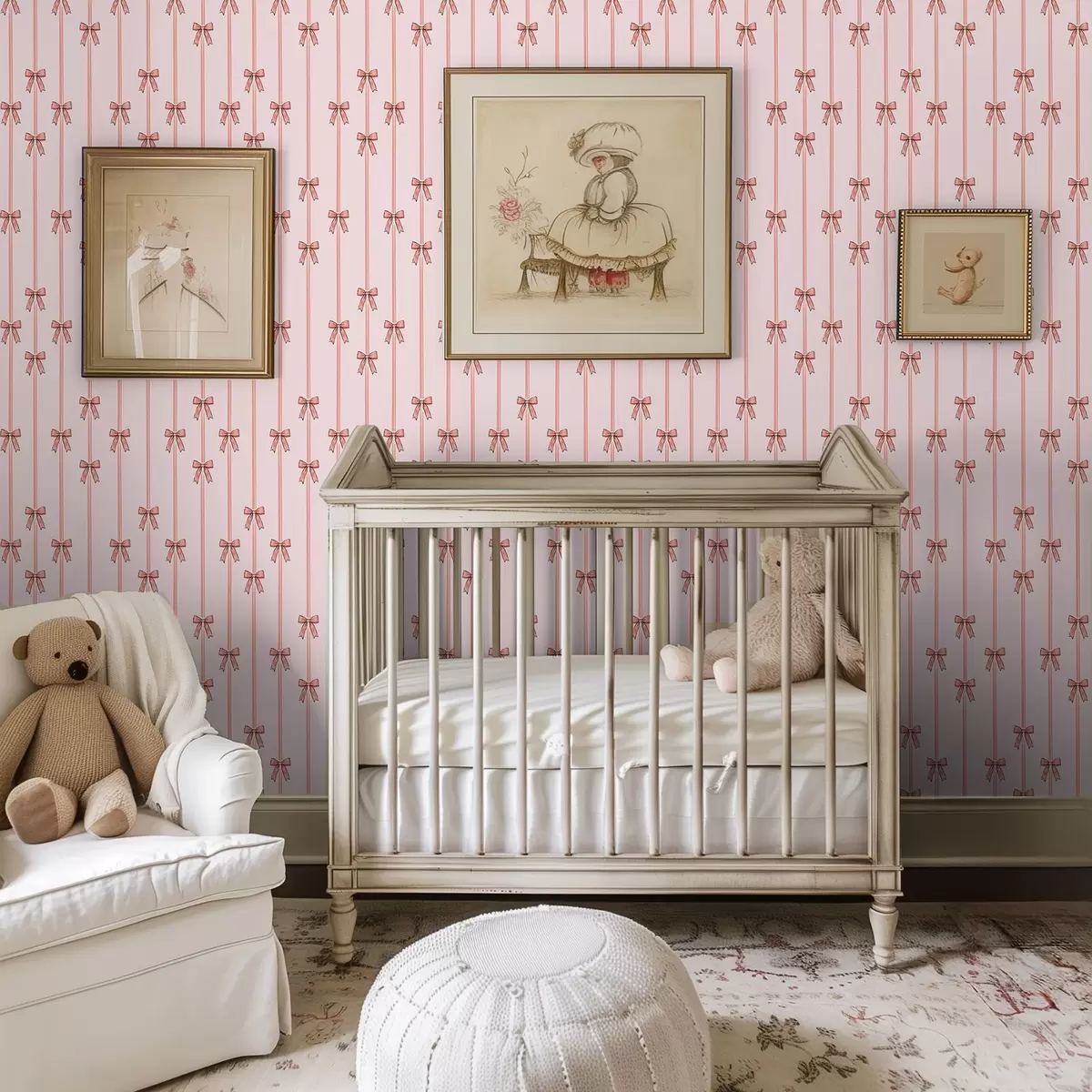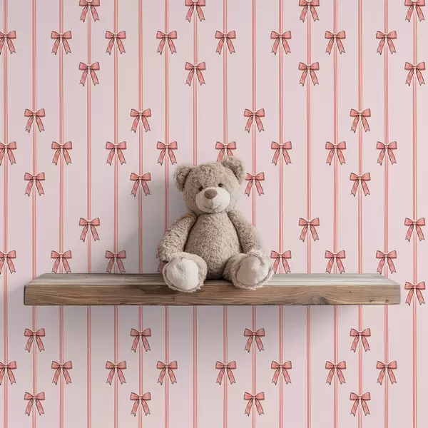 Wallpapers Vertical ribbons with bows, powder pink background No. a00653v2