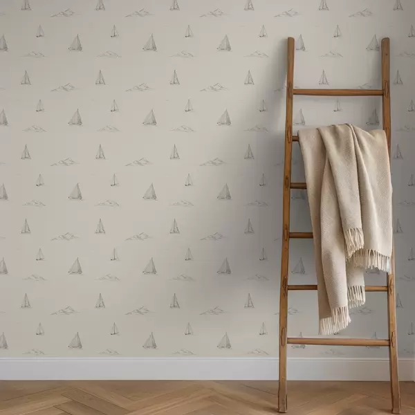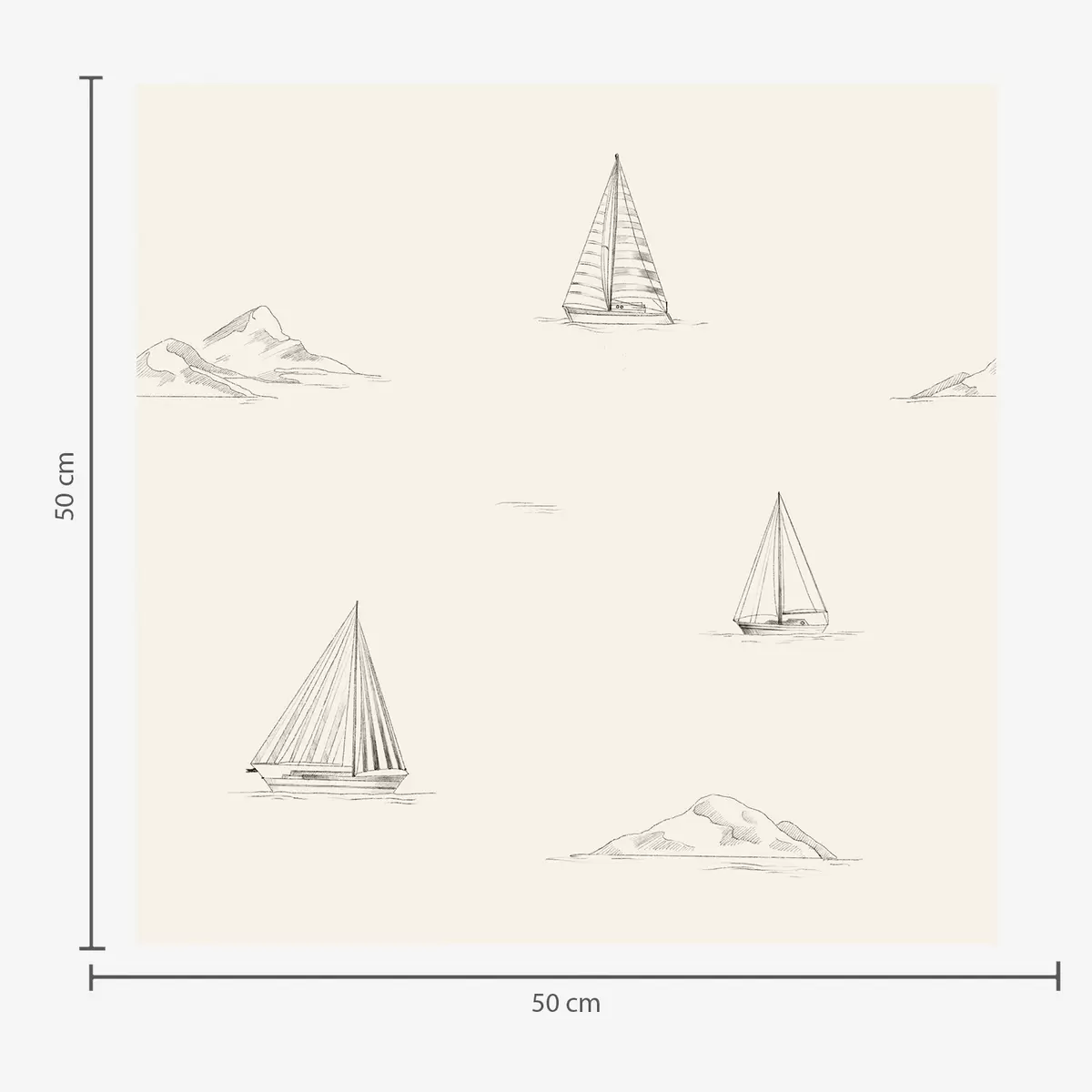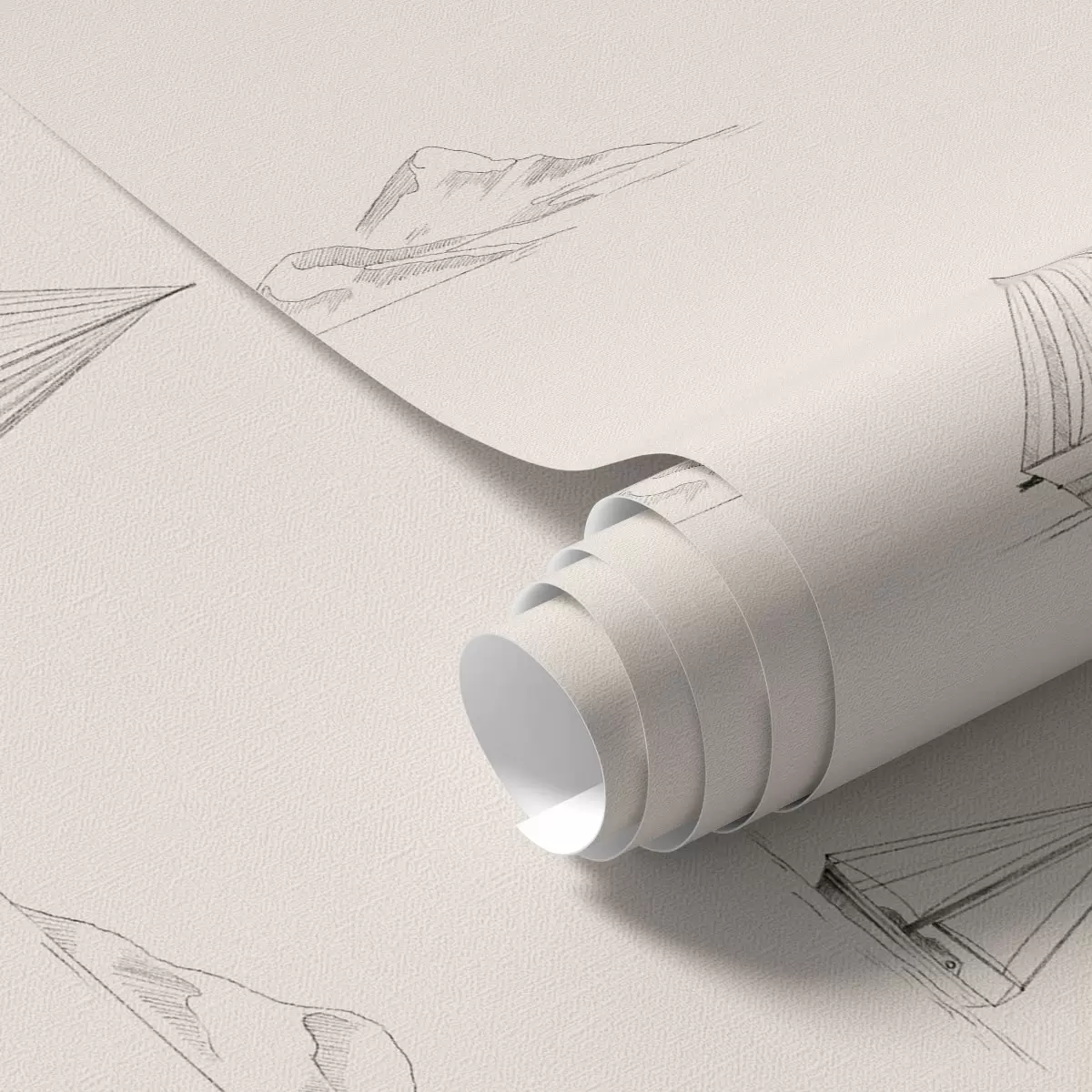 Wallpapers Sketch yachts and islands, warm cream background No. a00654v1