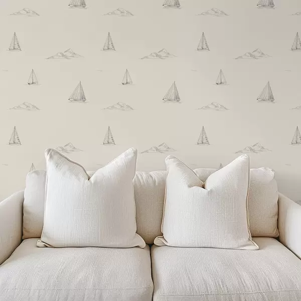 Wallpaper Sketch yachts and islands, warm cream background a00654v1