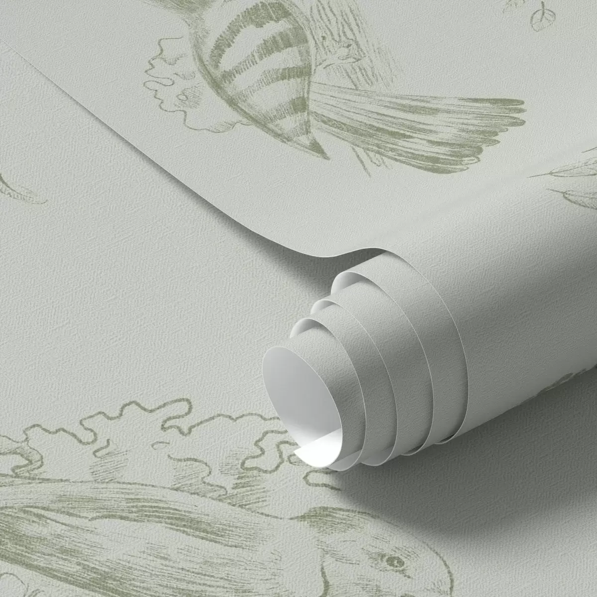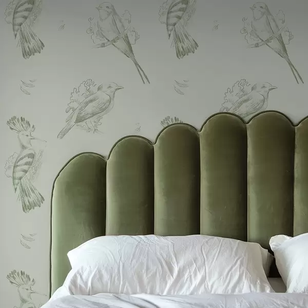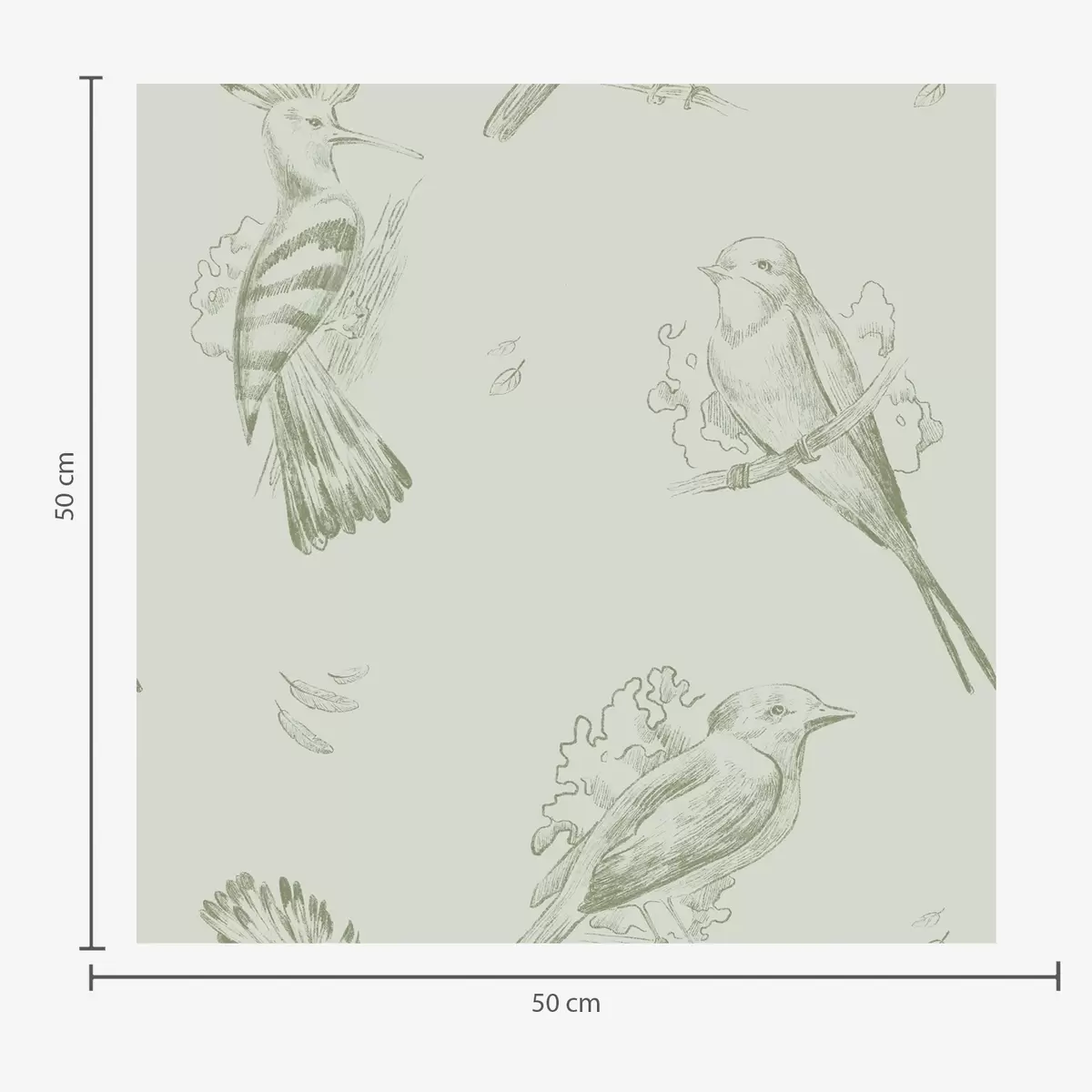 Wallpapers Bird toile: sketch birds on gray-green background No. a00656v1