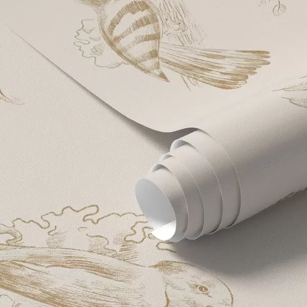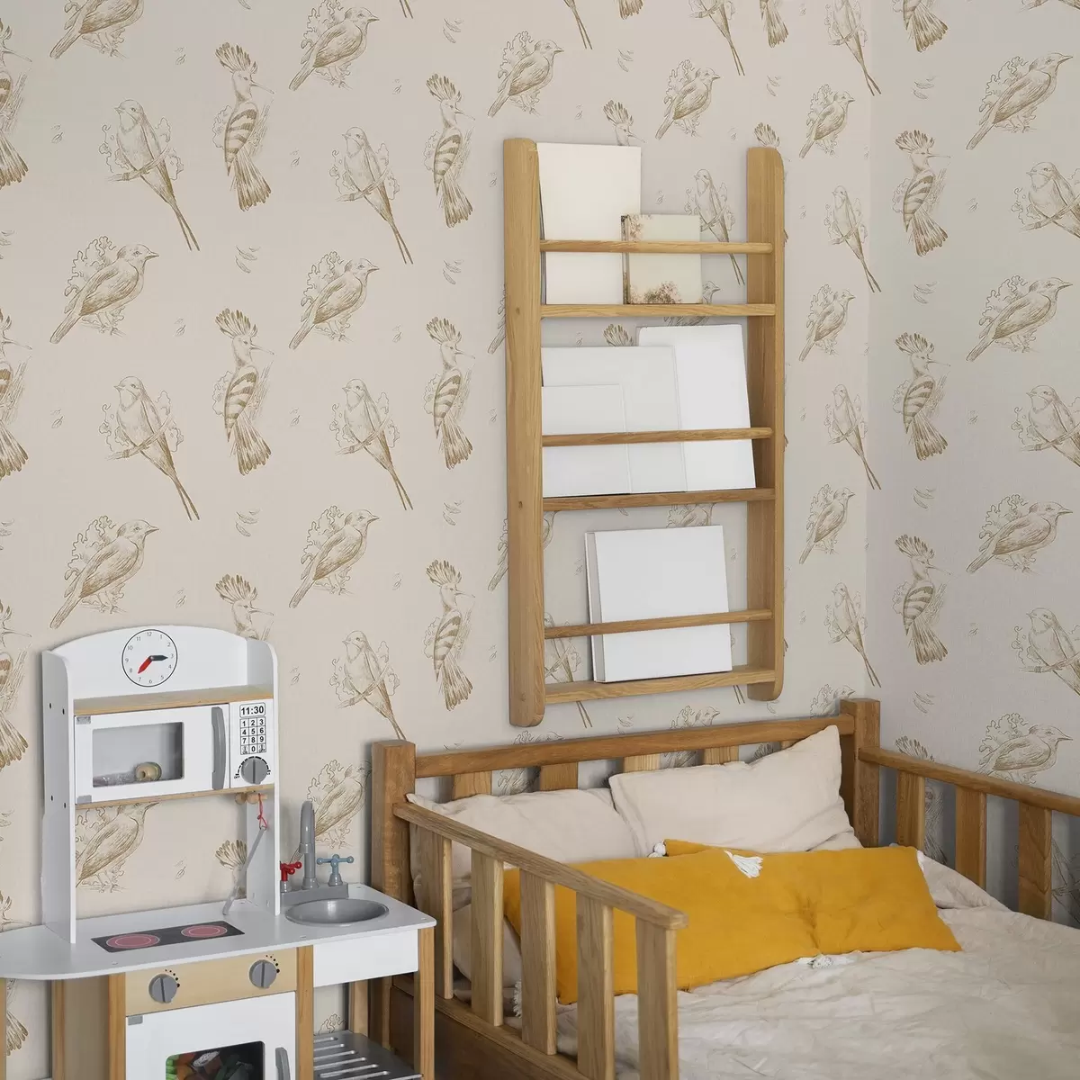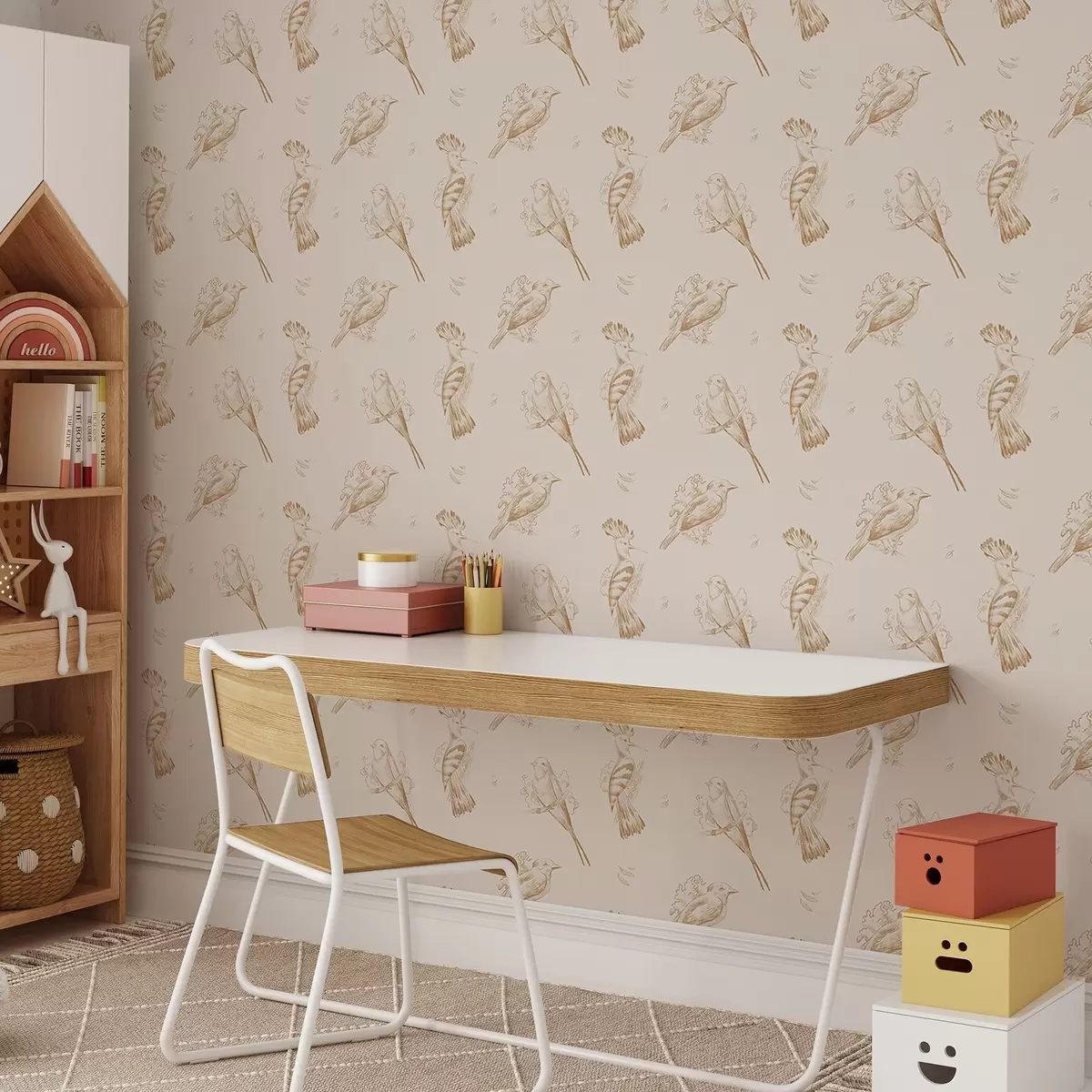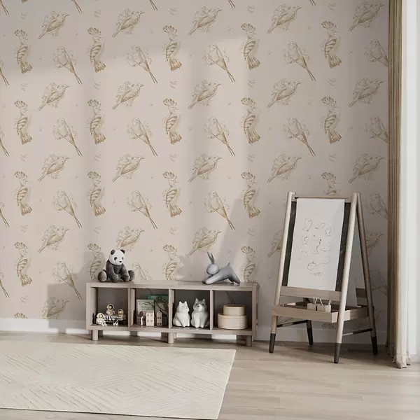 Wallpapers Bird toile: sketch birds on warm beige No. a00656v3