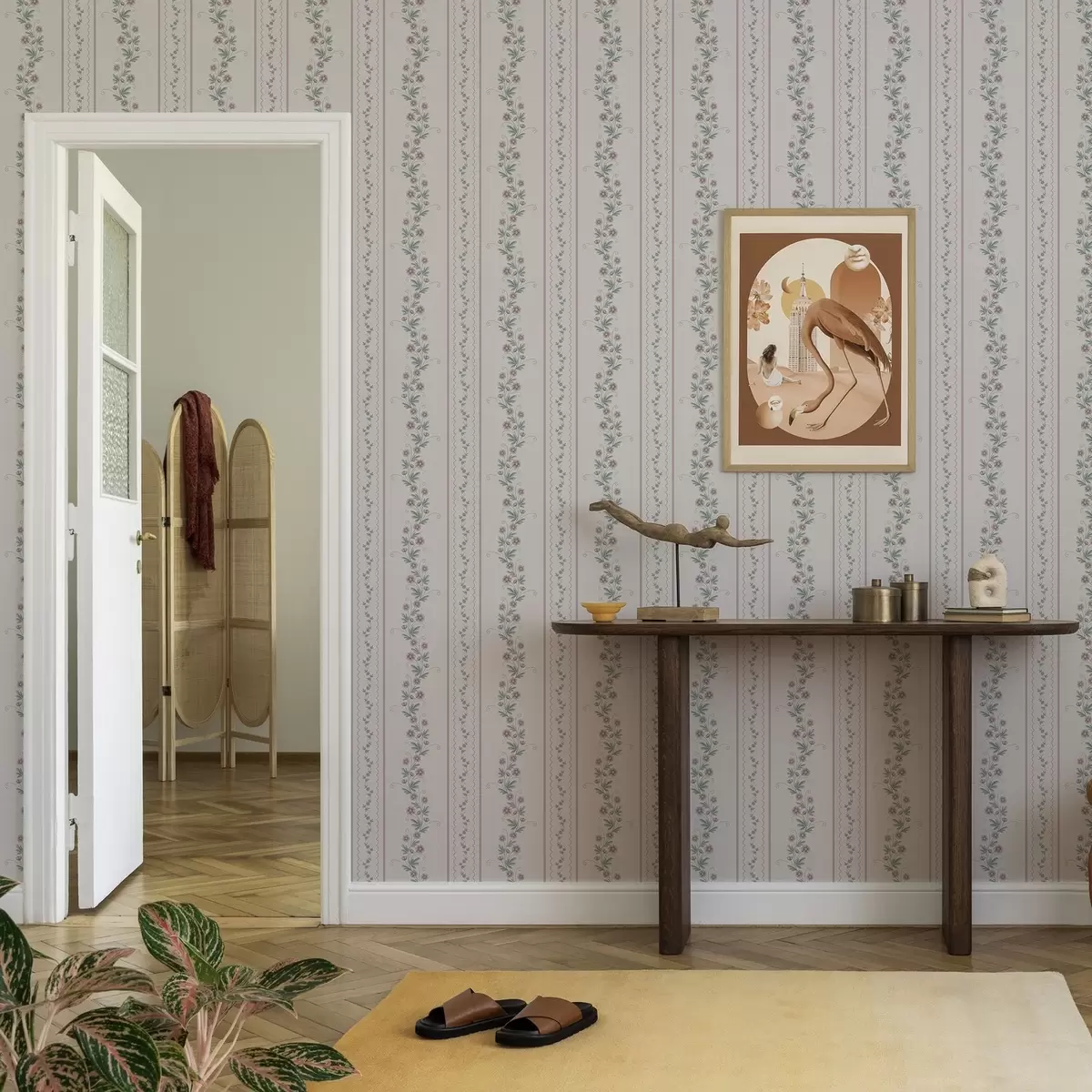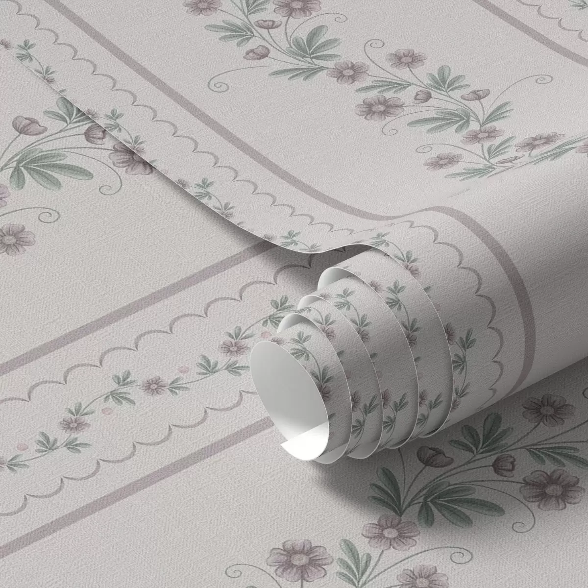 Wallpapers Delicate stripes with lavender flowers, vintage No. a00671