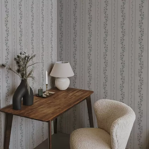 Wallpapers Delicate stripes with lavender flowers, vintage No. a00671