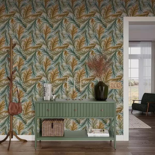 Wallpapers Decorative foliage in a warm ochre and green palette No. a00673