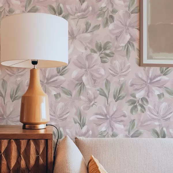 Wallpaper Pink flowers with delicate leaves on a soft background a00675