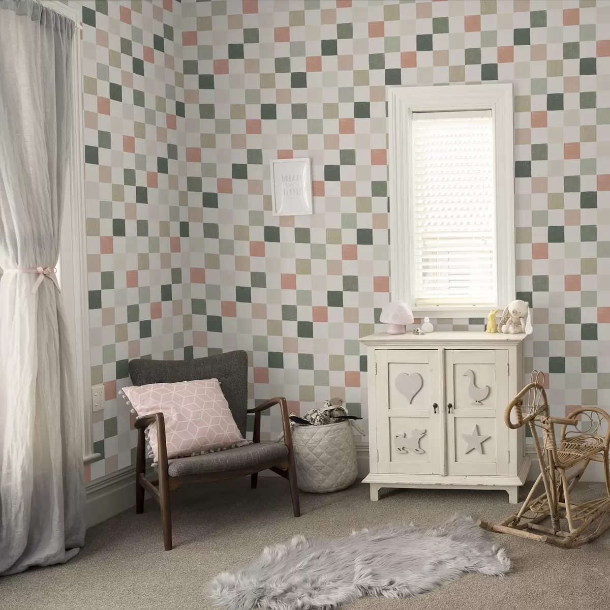 Wallpapers Soft plaid in pastel green, pink and beige tones No. a00676