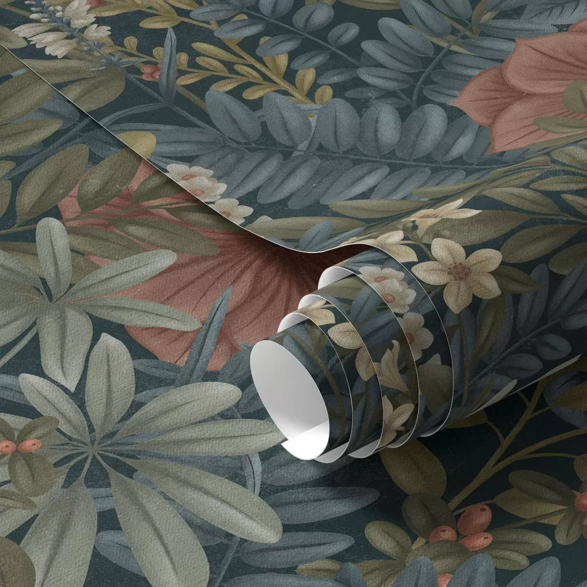 Wallpapers Dark background with dense flowers and leaves in warm tones No. a00678
