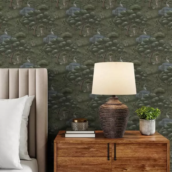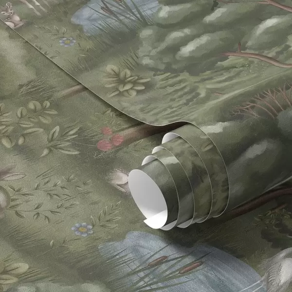 Wallpaper Forest glade with fawns, rabbits and herons a00680