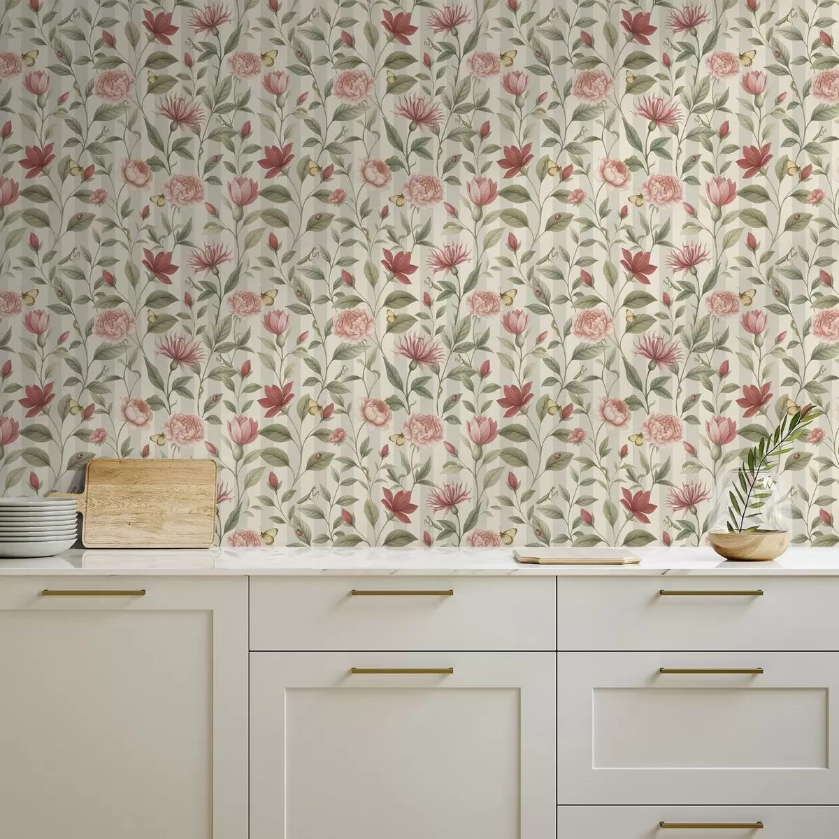 Wallpapers Floral stems with butterflies on a light background No. a00698