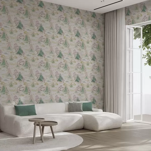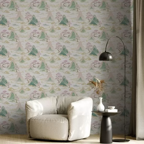 Wallpapers Mountains, clouds, and pines in an oriental decorative style No. a00703