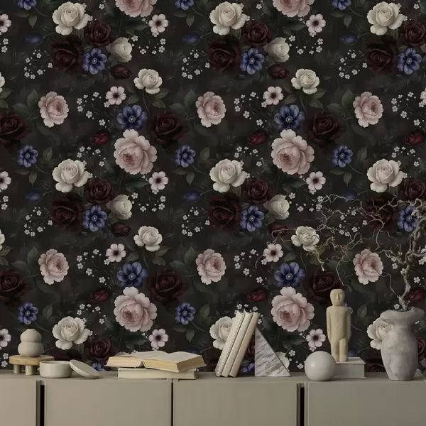 Wallpapers Dark roses, anemones, and peonies on a deep background No. a00704