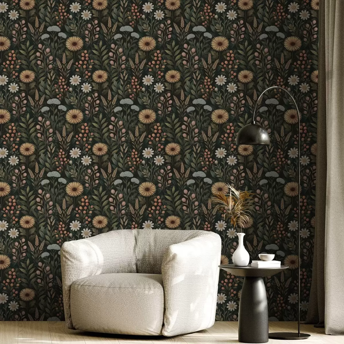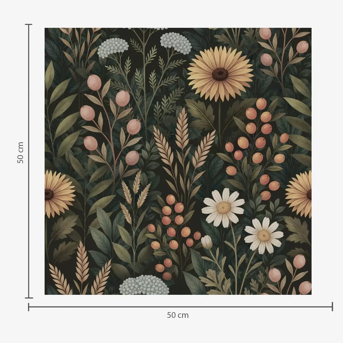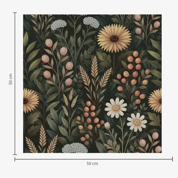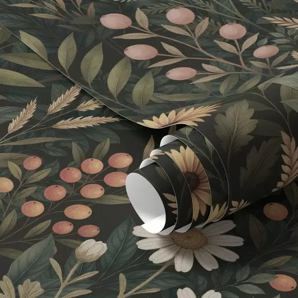 Wallpapers Wildflowers and berries on a dark background, natural ornament No. a00707