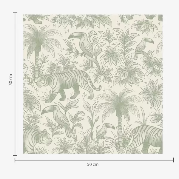 Wallpapers Tigers and tropical birds among palms on a light background No. a00711