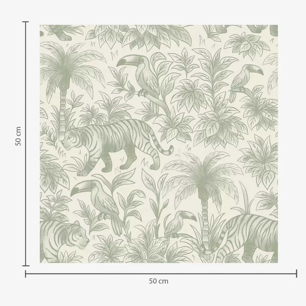 Wallpapers Tigers and tropical birds among palms on a light background No. a00711