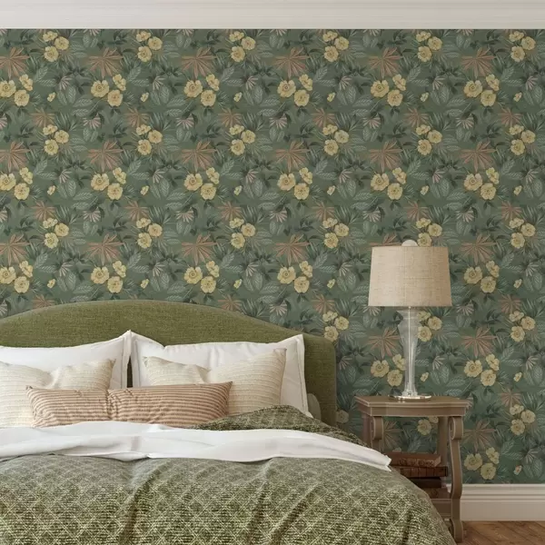 Wallpapers Yellow flowers amid green leafy texture No. a00718
