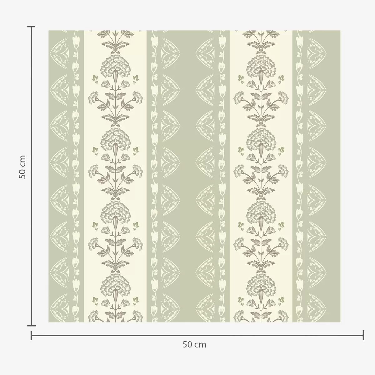 Wallpapers Striped ornament with floral columns in sage tones No. a00719