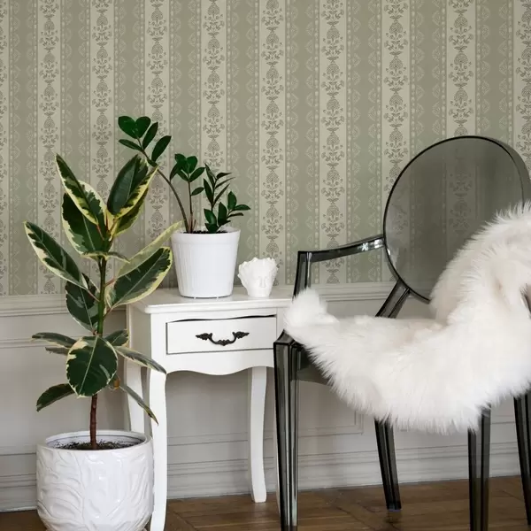 Wallpapers Striped ornament with floral columns in sage tones No. a00719